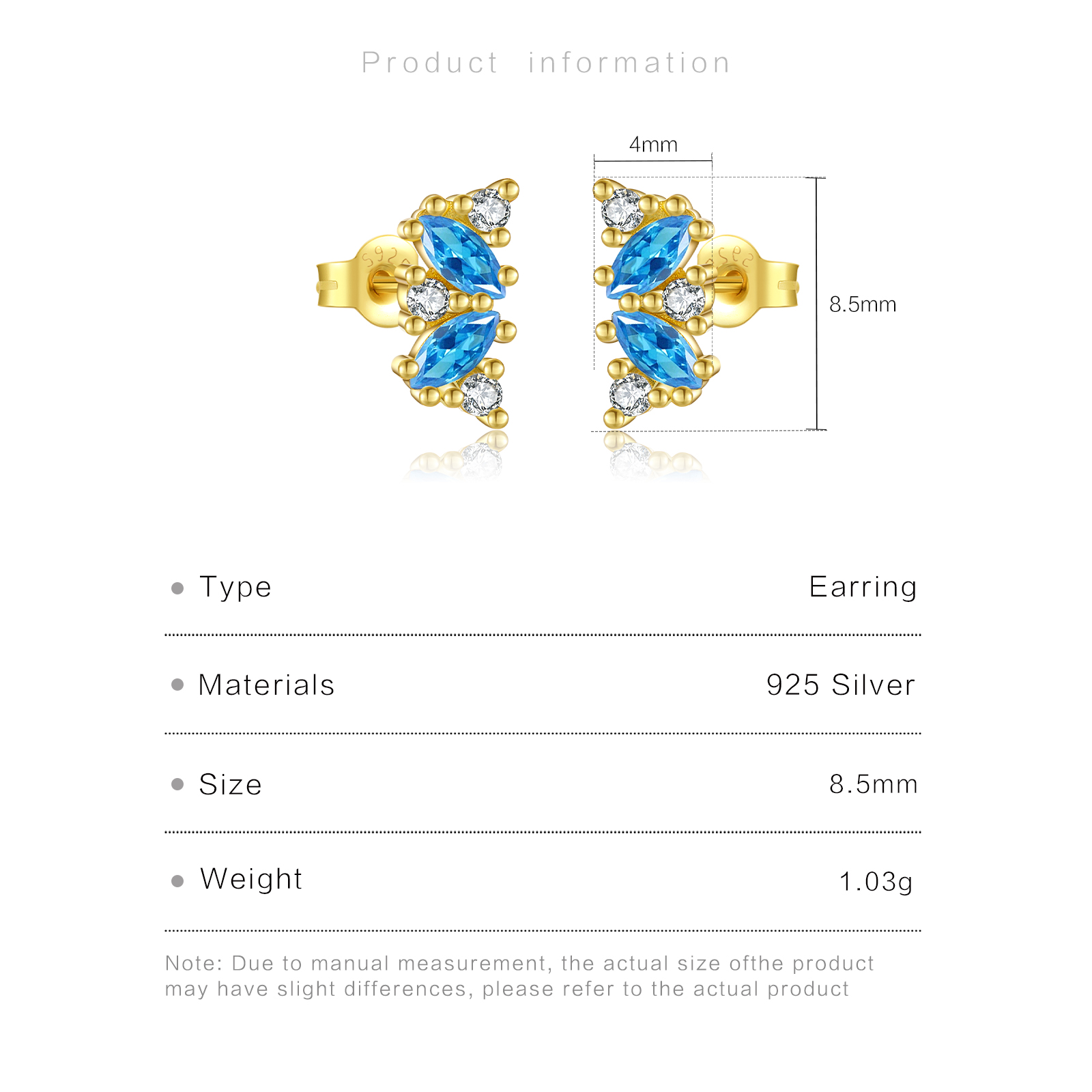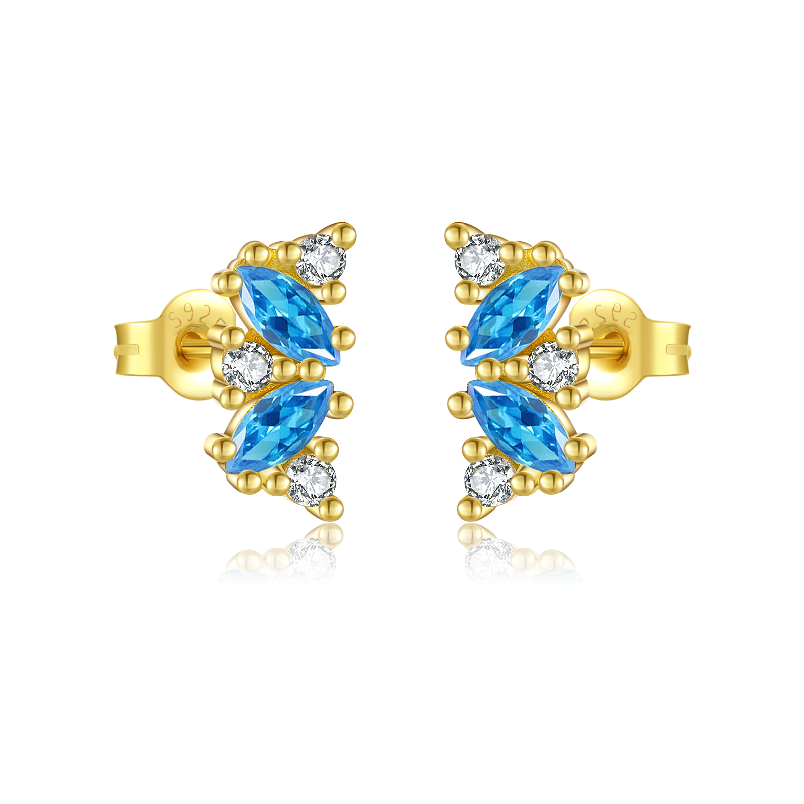 925 Silver Gold Plated Blue Zircon Stud Earrings-MME1097