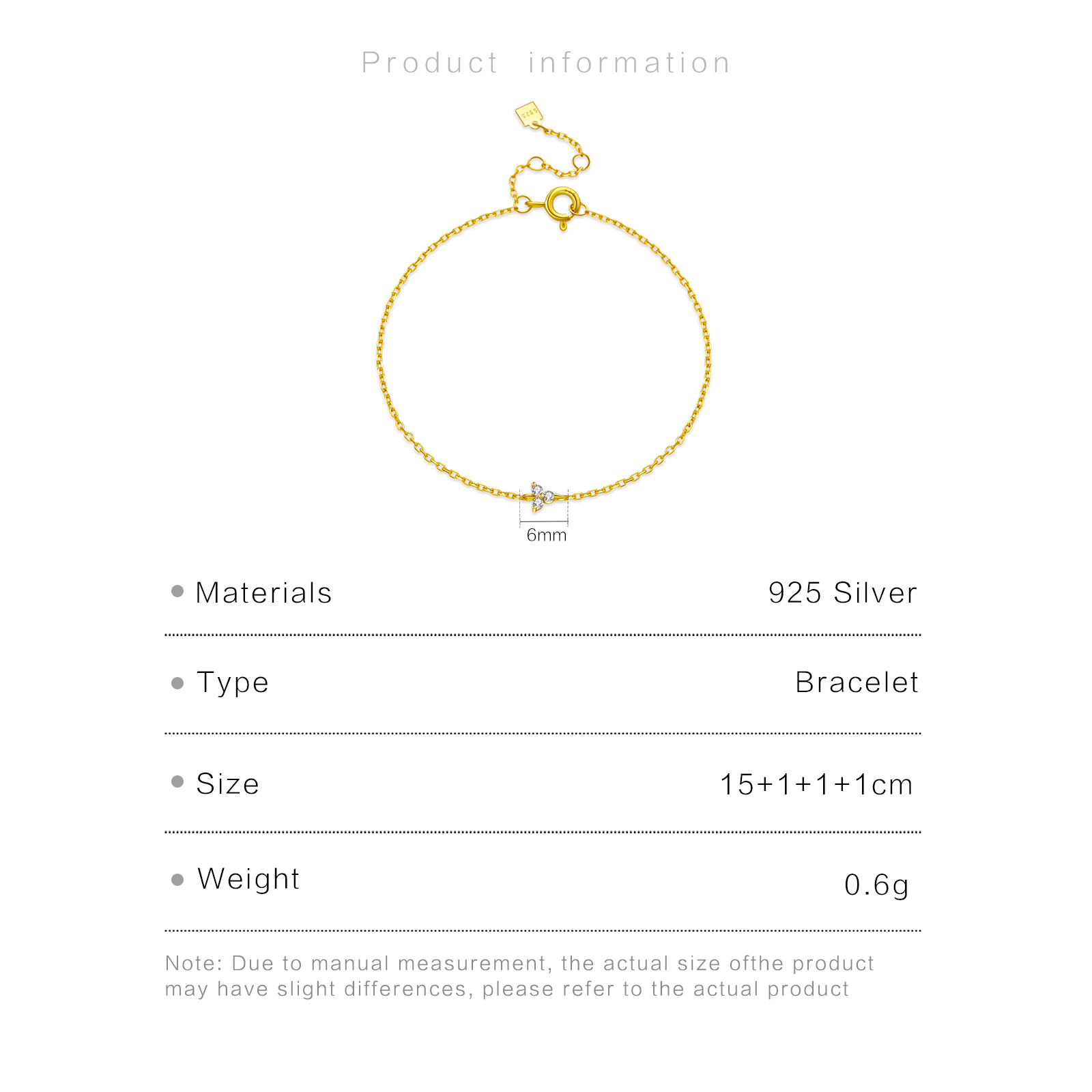 | Color | Plated Rhodium & 18K Golden Color |