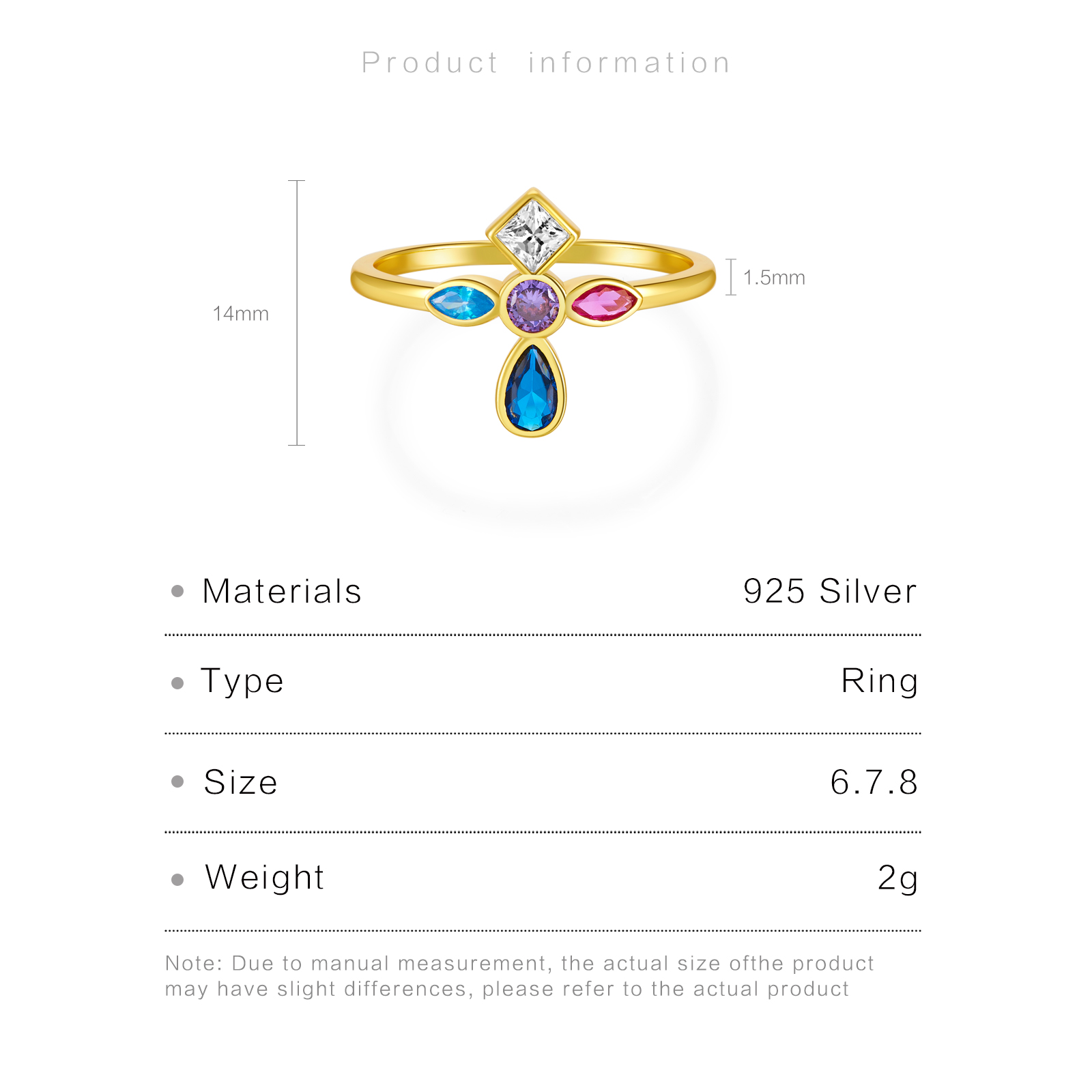 | Color | Plated Rhodium & 18K Golden Color |