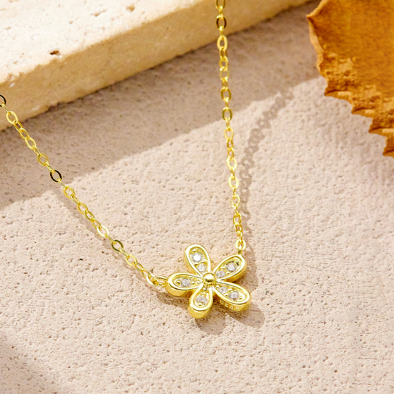 925 Silver Gold-Plated CZ Flower Pendant Necklace-MMN635