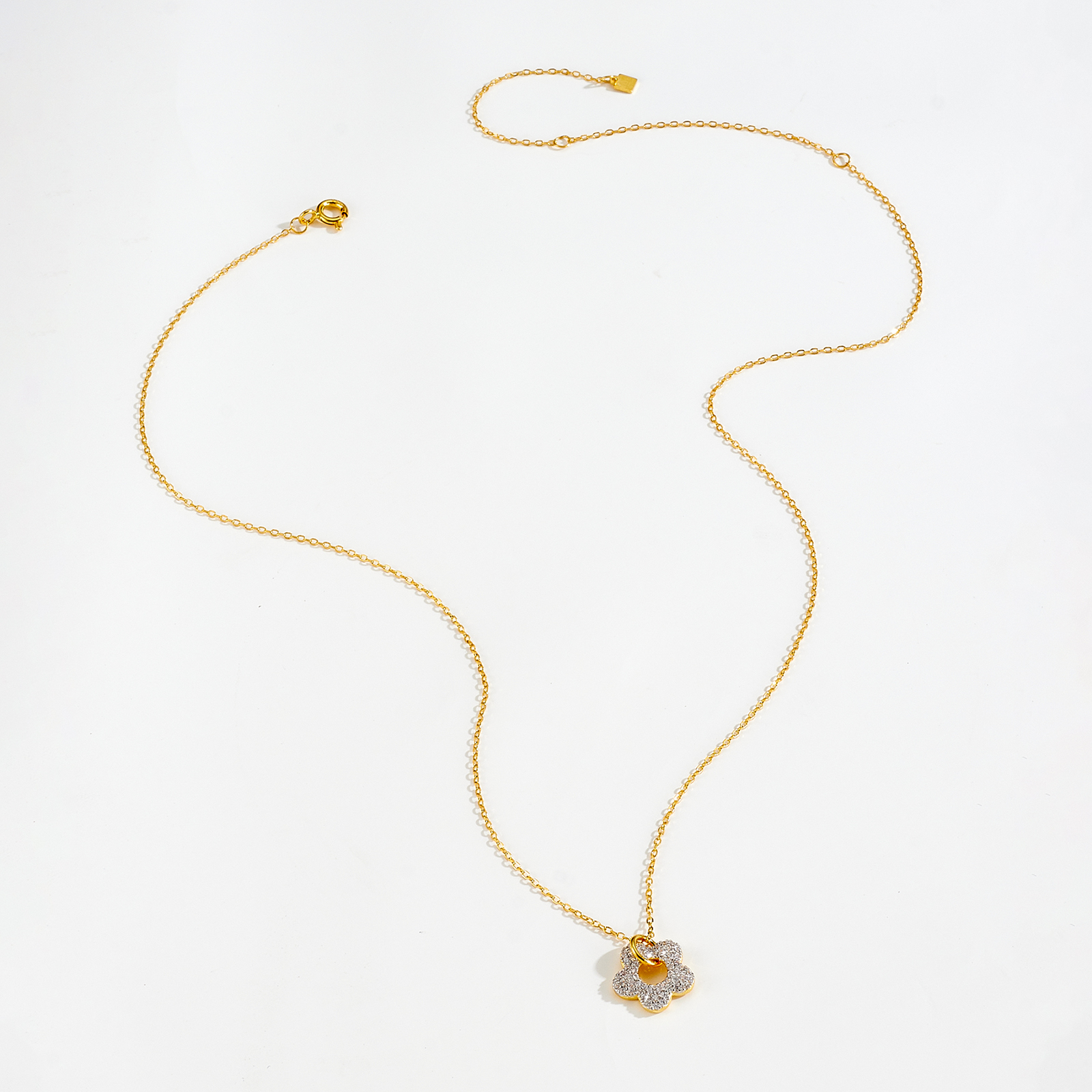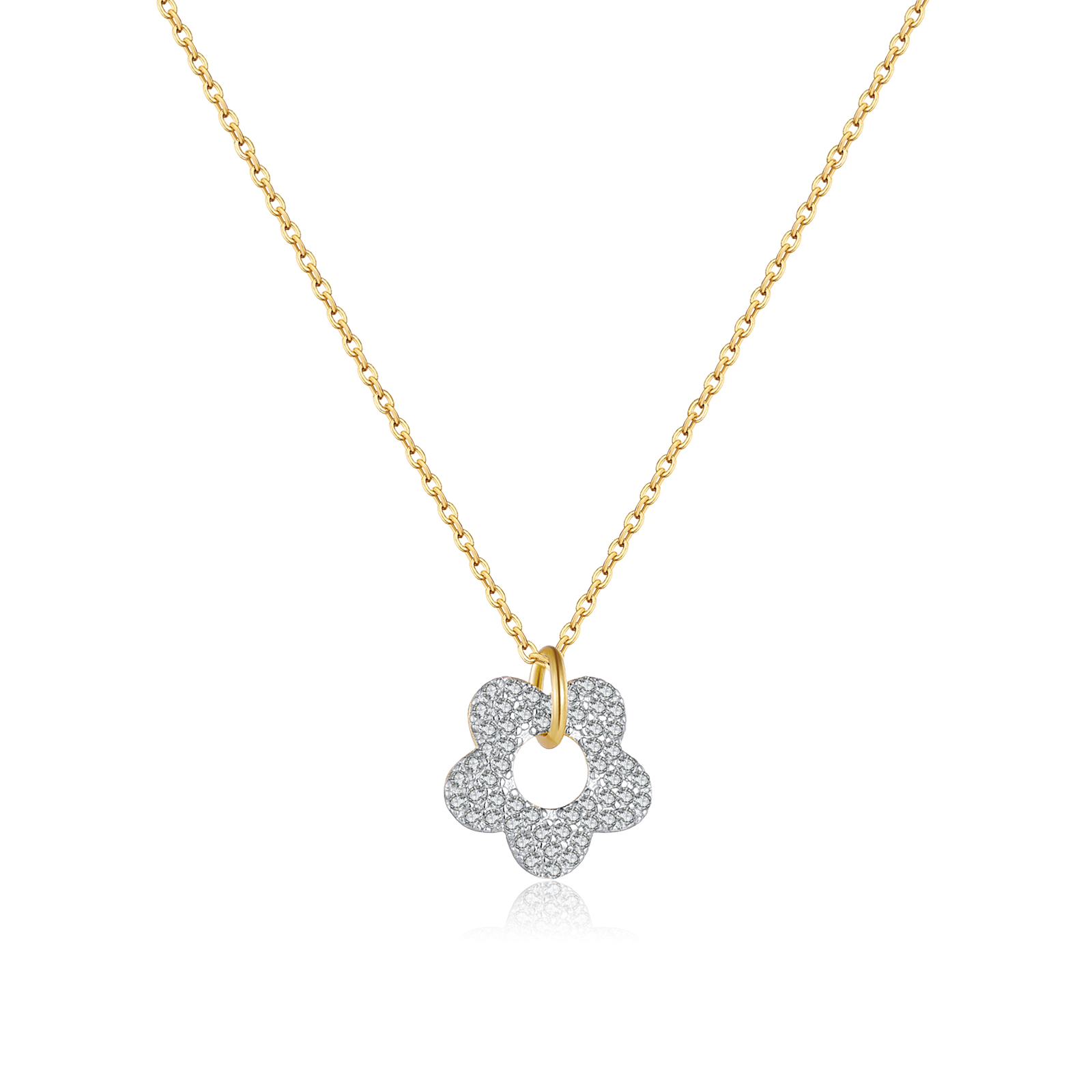 925 Silver Gold-Plated CZ Flower Pendant Necklace-MMN674