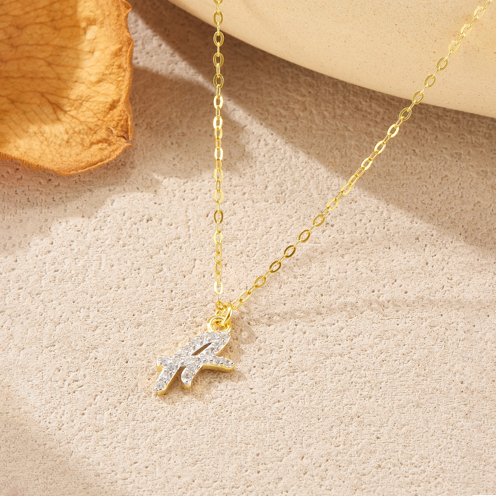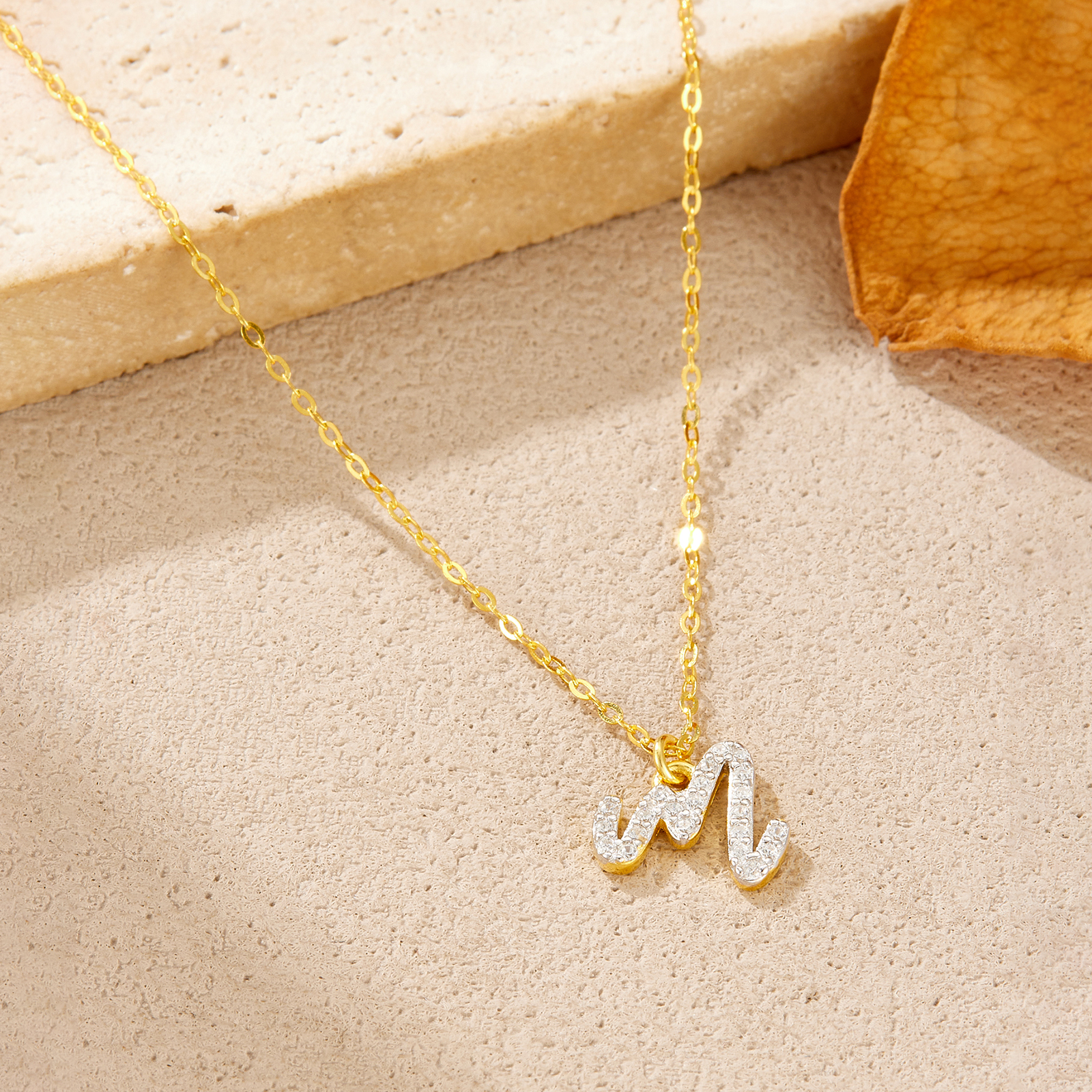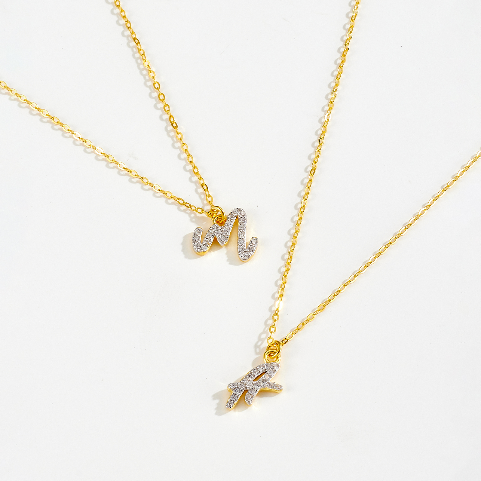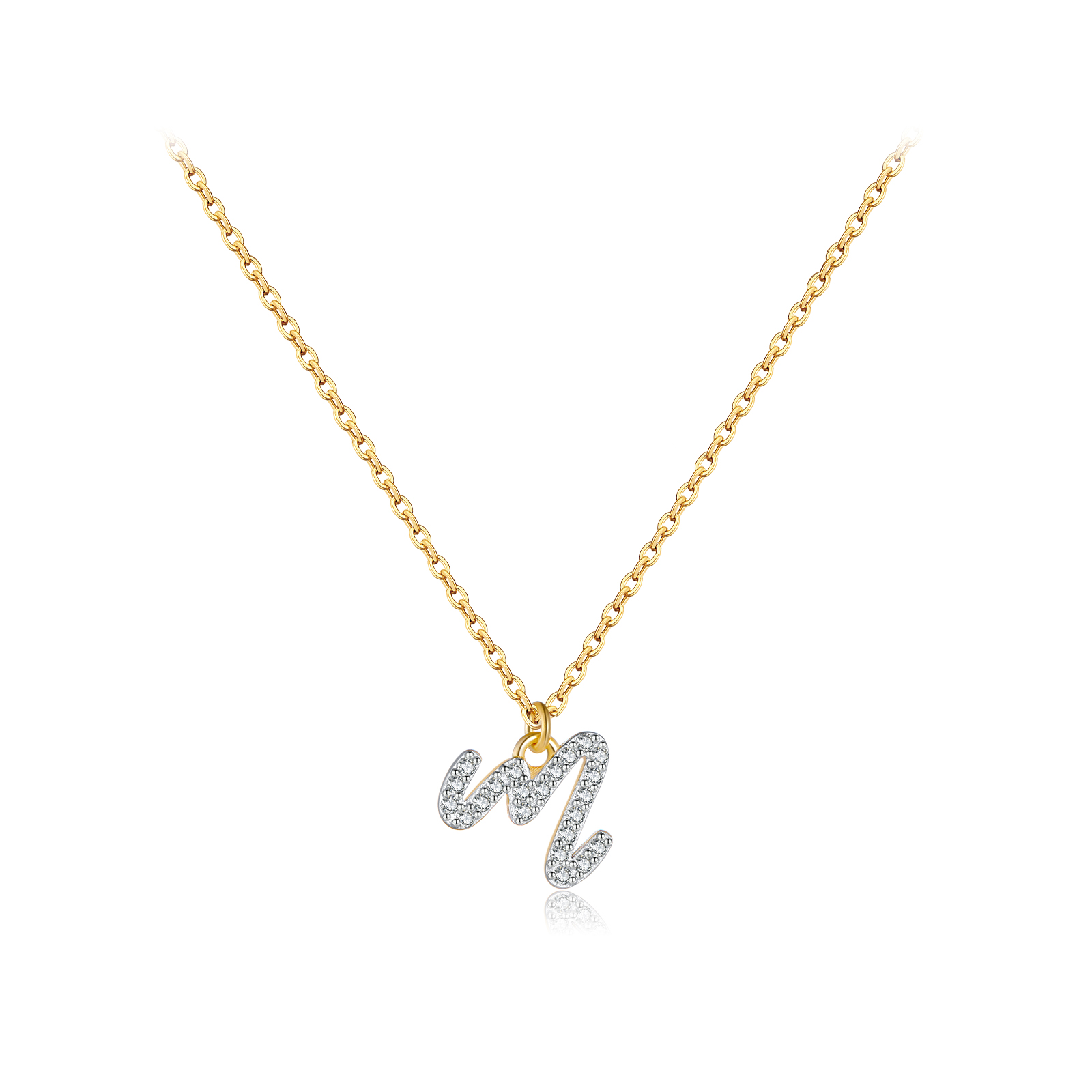 925 Silver Gold-Plated CZ Letter “A/M” Pendant Necklace-MMN673