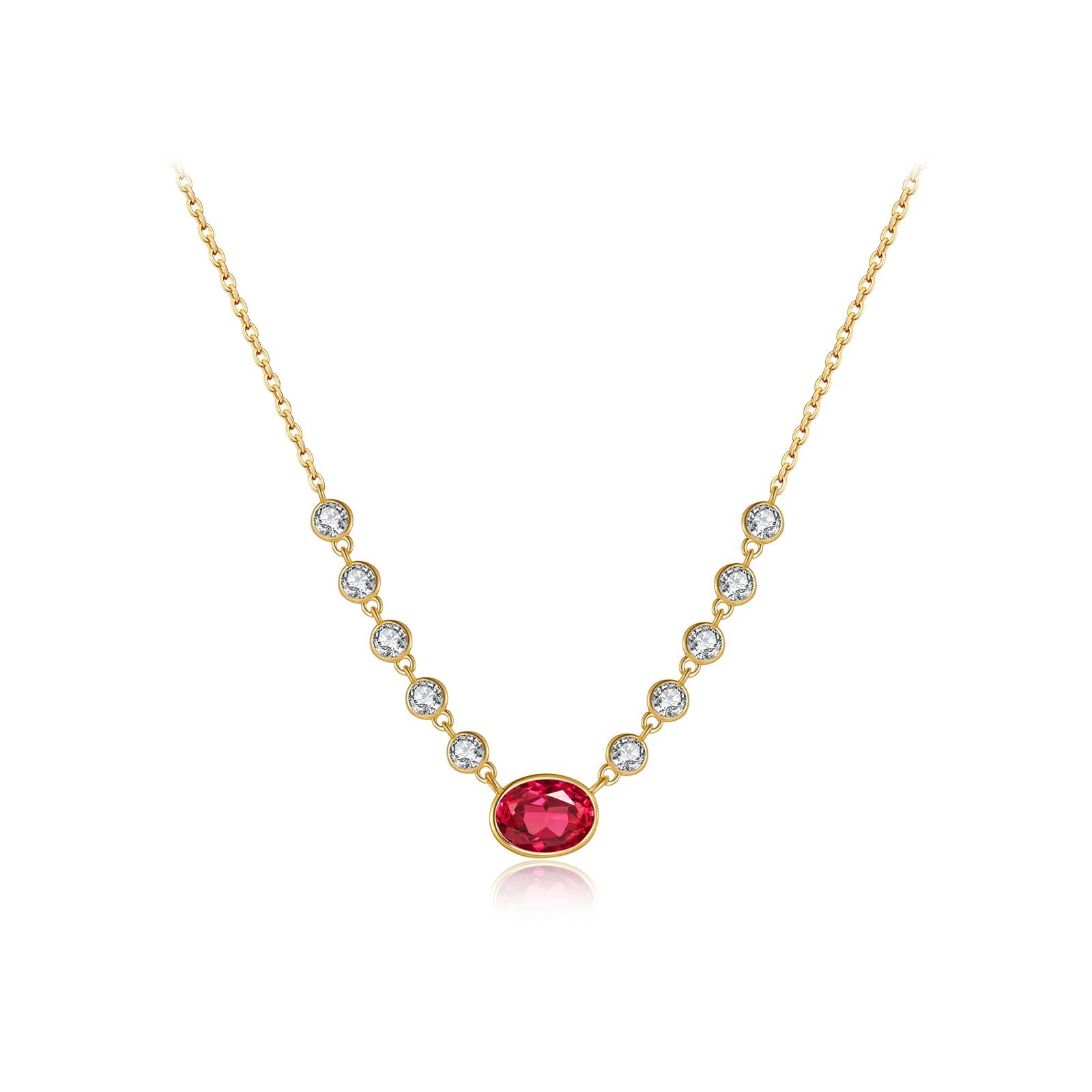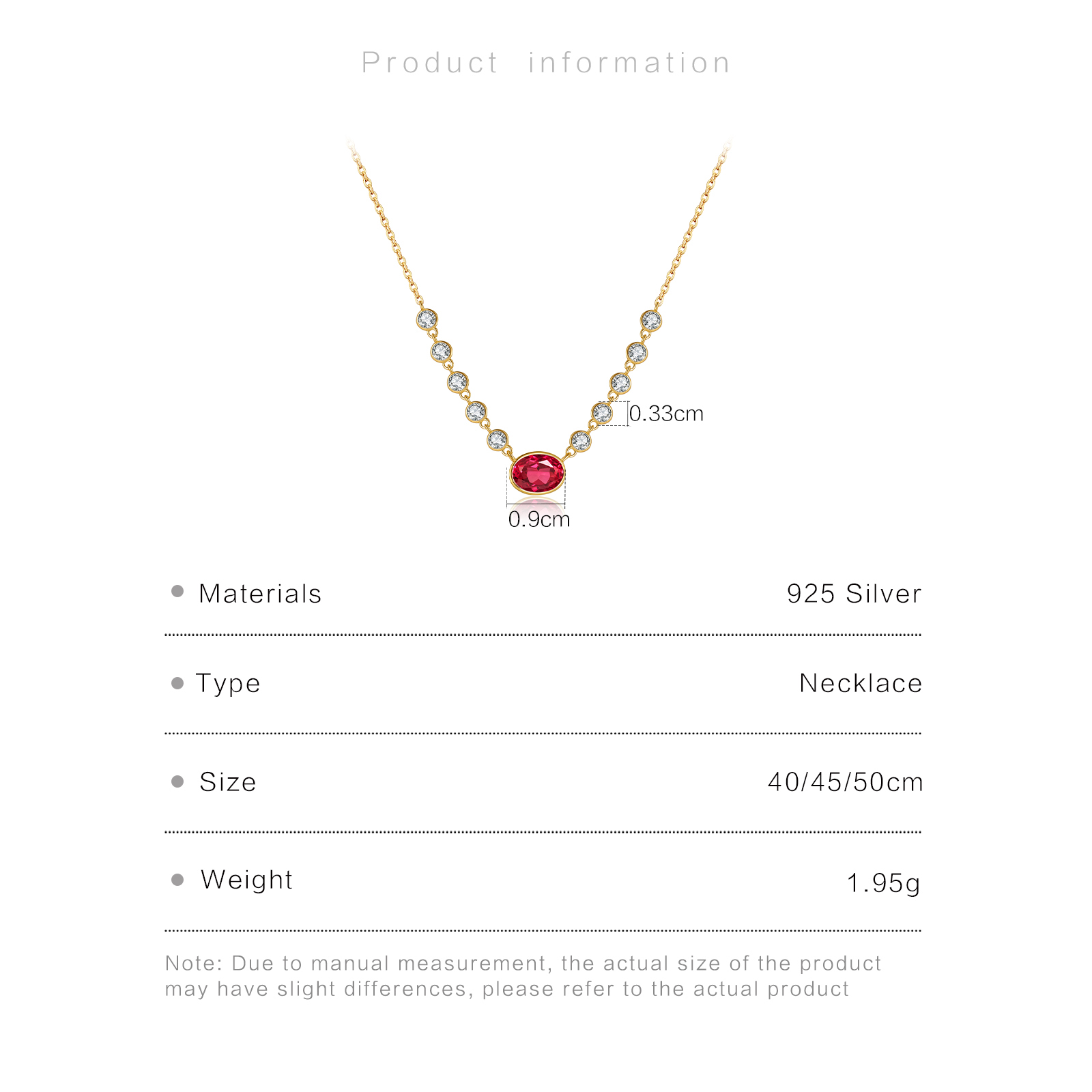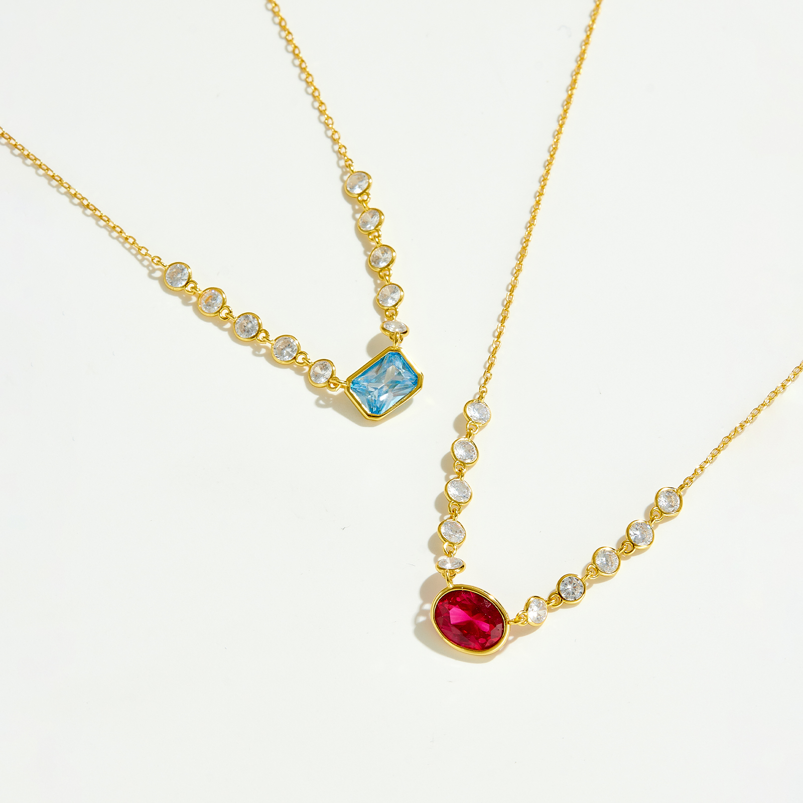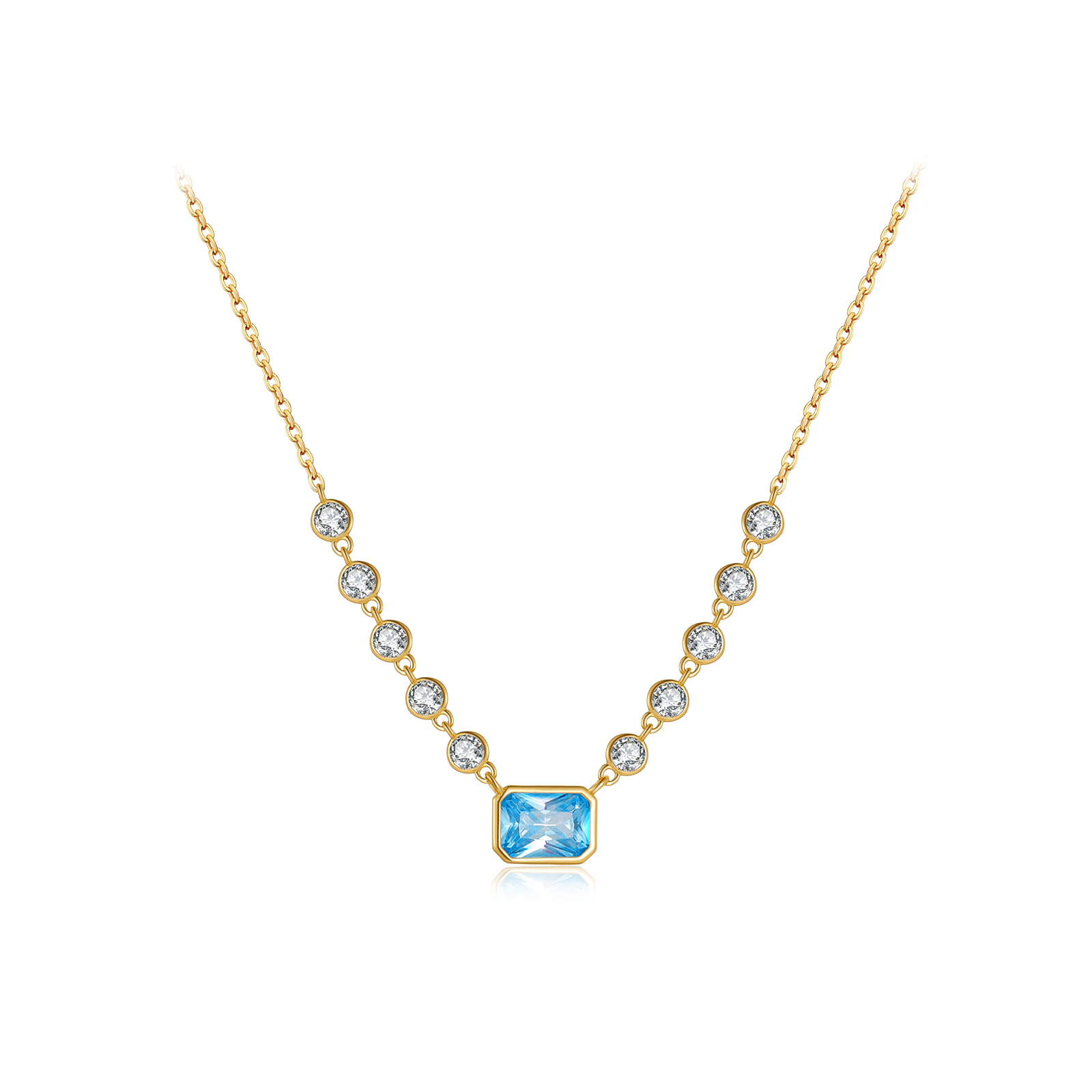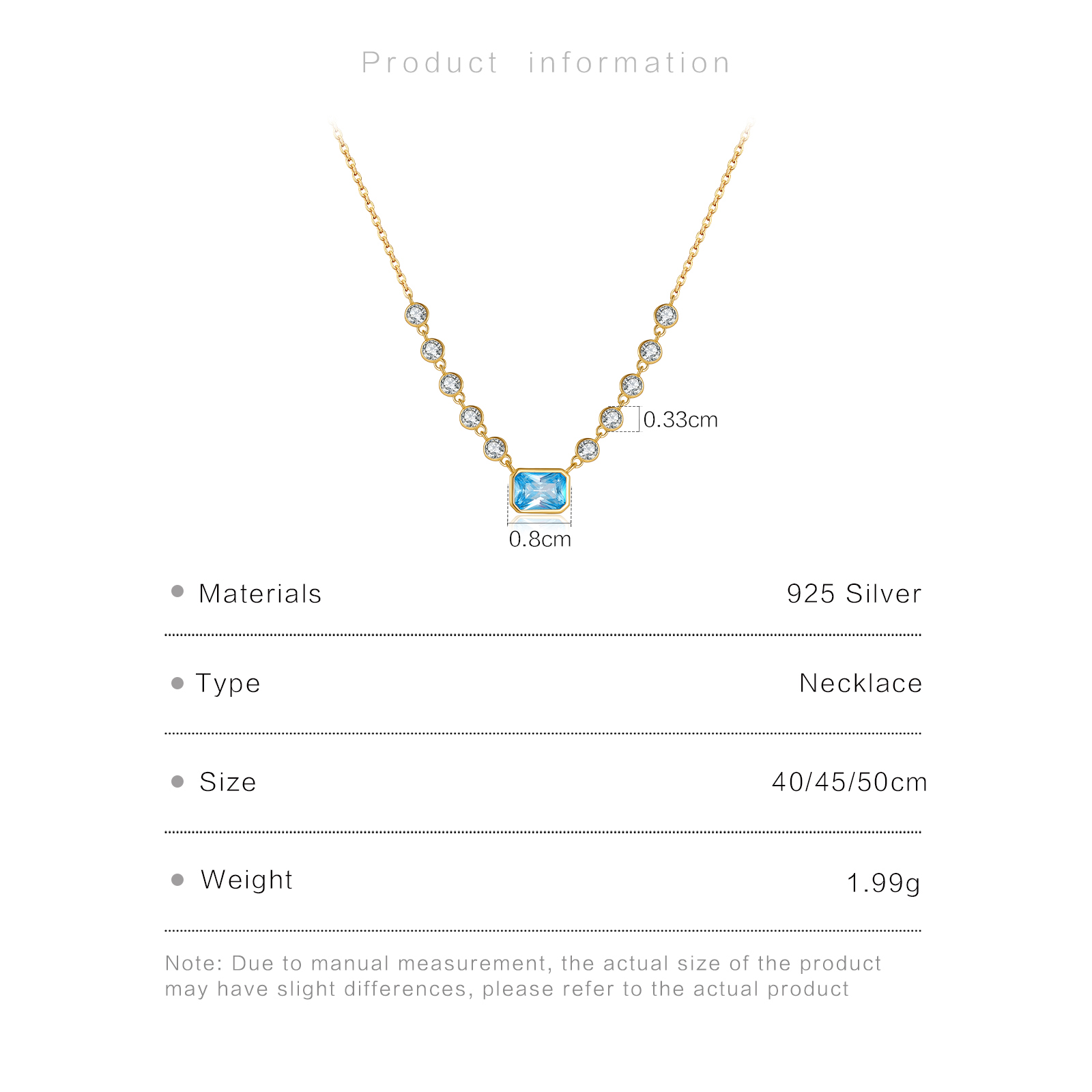 Size Blue Emerald-Cut 8mm, Pink Oval 9×7mm, Mini CZ 3.3mm, Chain 40/45/50cm