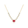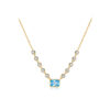 925 Silver Gold-Plated CZ Station Necklace Set, Blue Emerald-Cut & Pink Oval-MMN707
