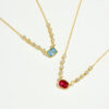 Be the first to review “925 Silver Gold-Plated CZ Station Necklace Set, Blue Emerald-Cut & Pink Oval-MMN707”