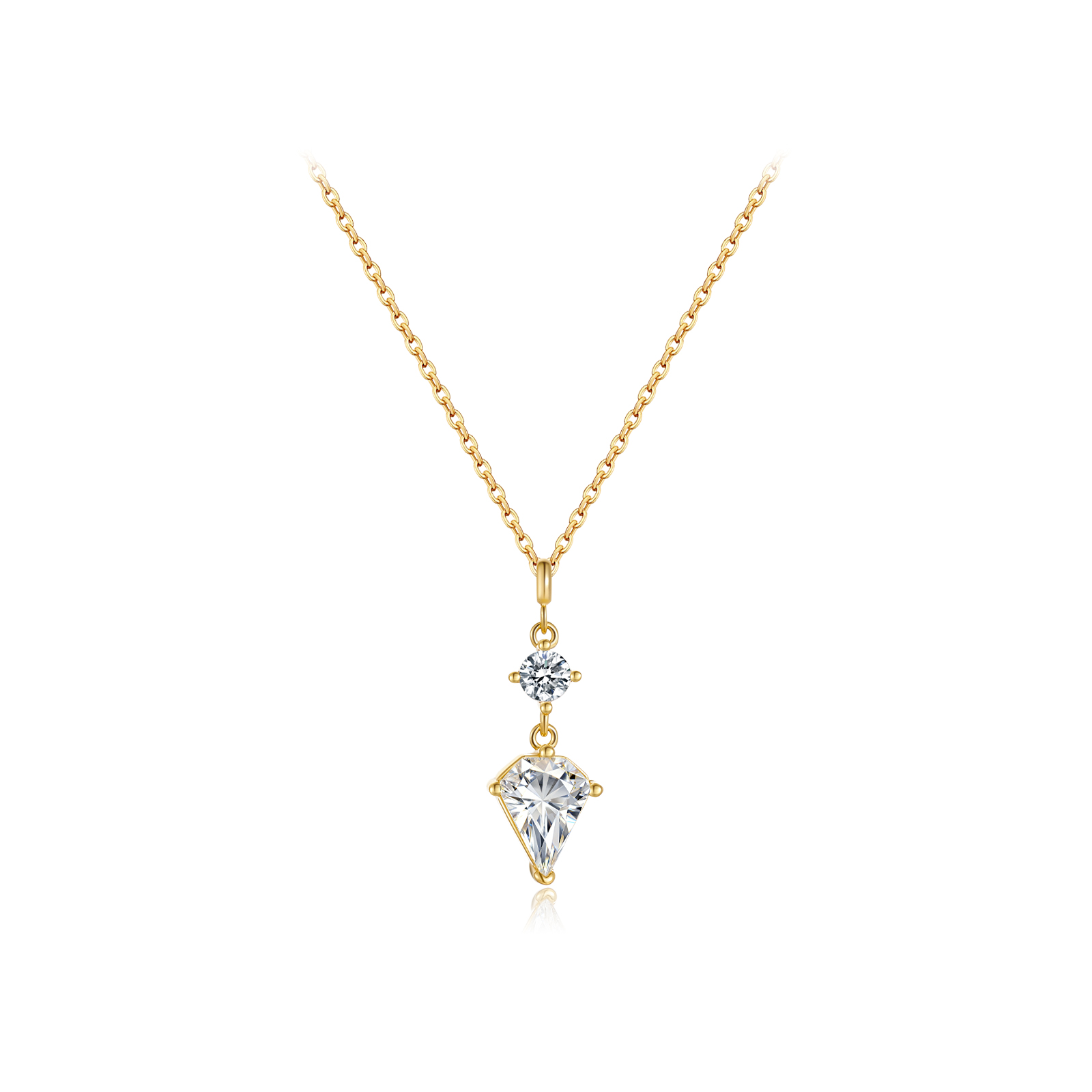 925 Silver Gold-Plated CZ Trillion Pendant Necklace-MMN708