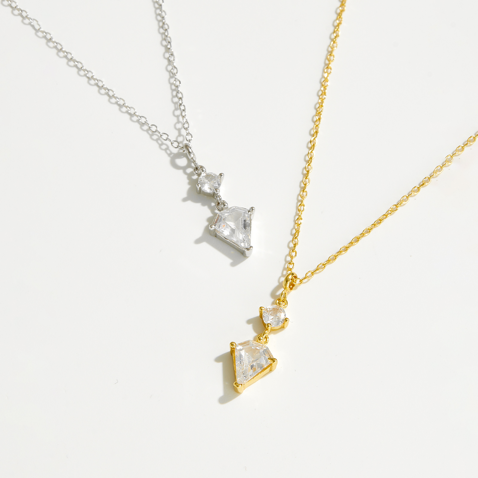Size Chain 40/45/50cm, Mini CZ 3.5mm, Trillion Pendant 7.5×8mm