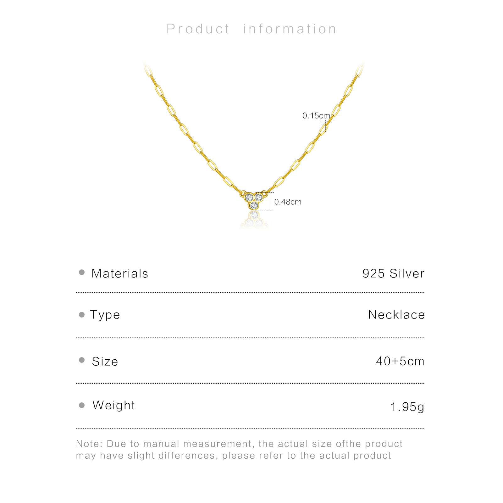 | Size | Pendant 4.8mm Chain Length 40+5cm |