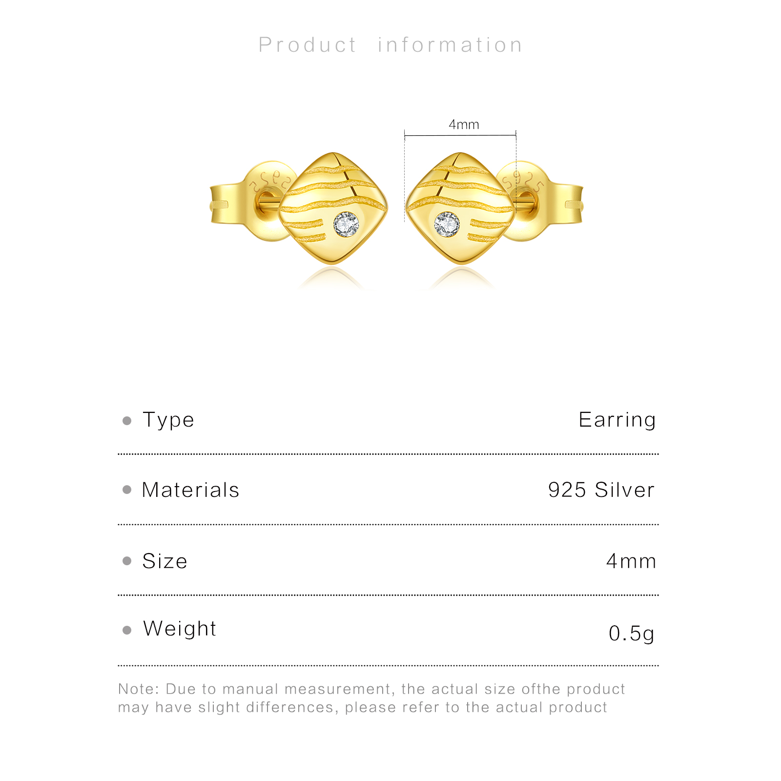 925 Silver Gold Plated Diamond-shaped Textured Round Stone Stud Earrings-MME1063