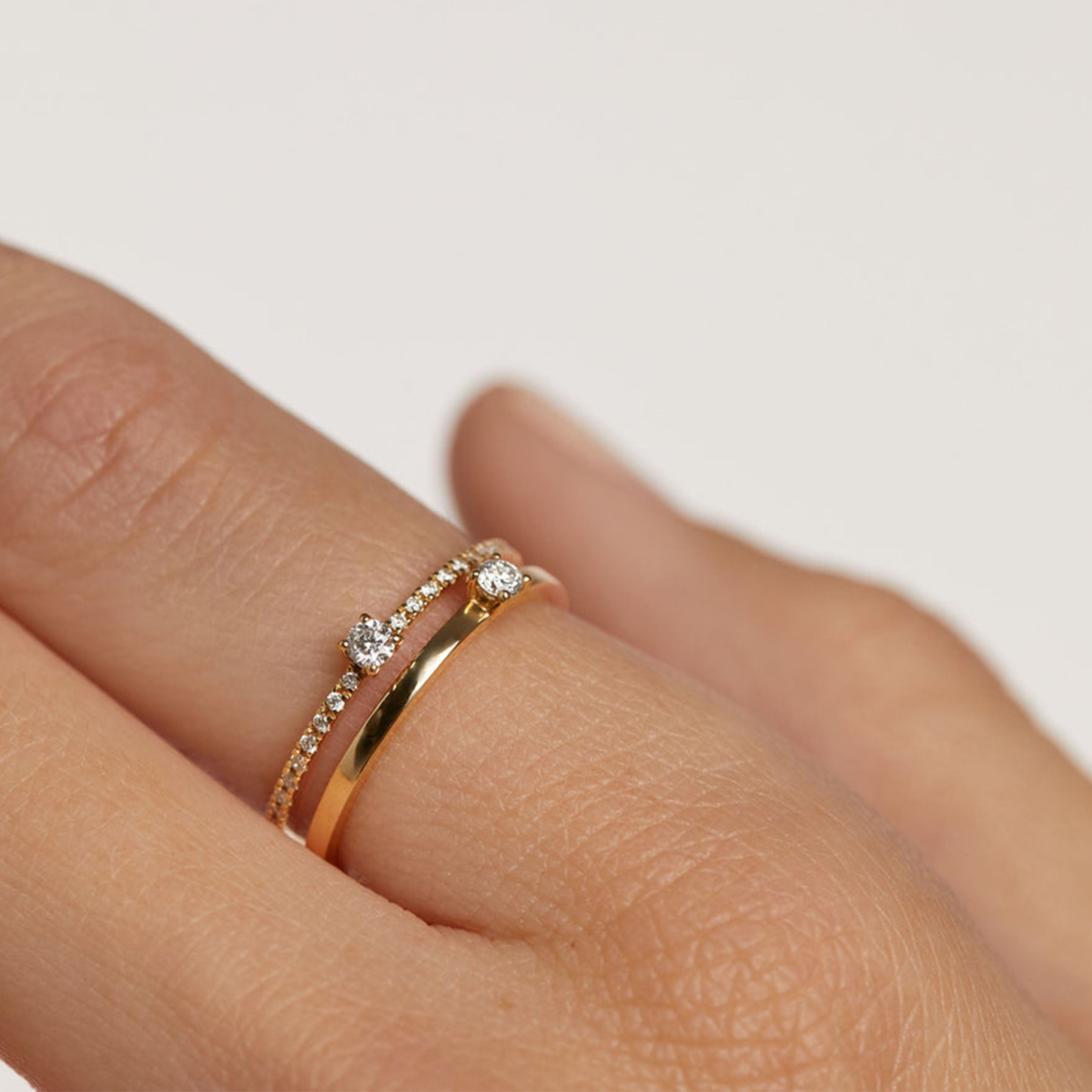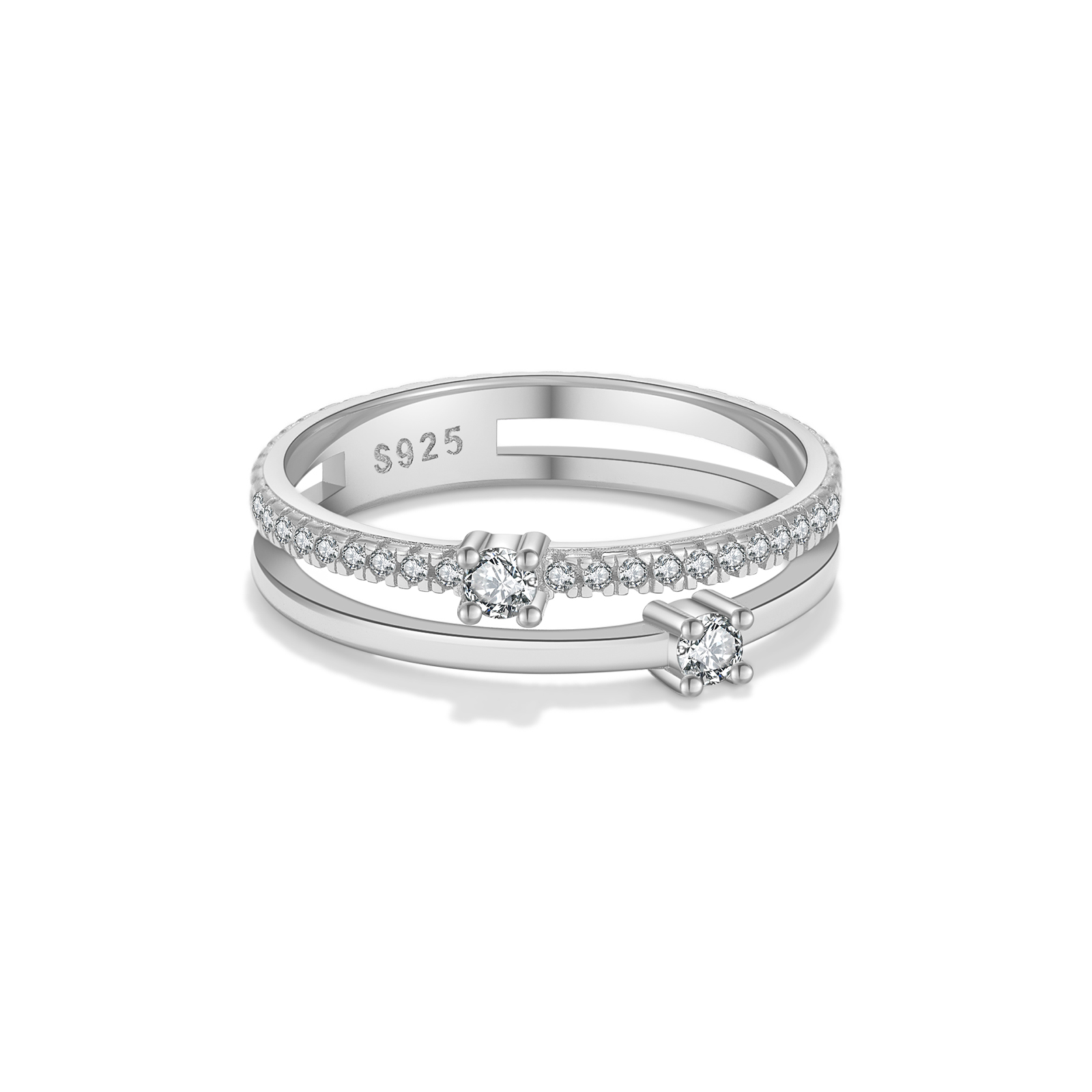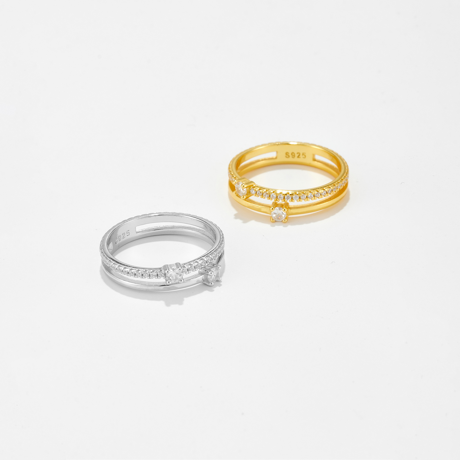 925 Silver Gold-Plated Double-Band Diamond Ring-MMR239
