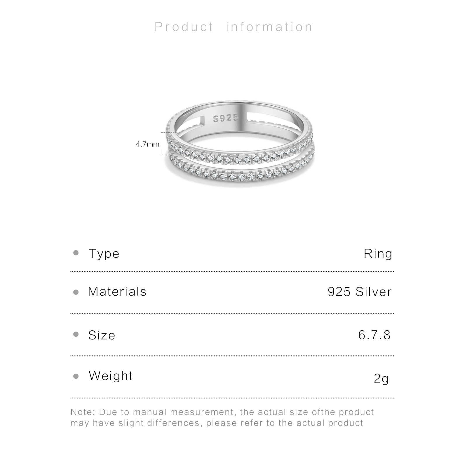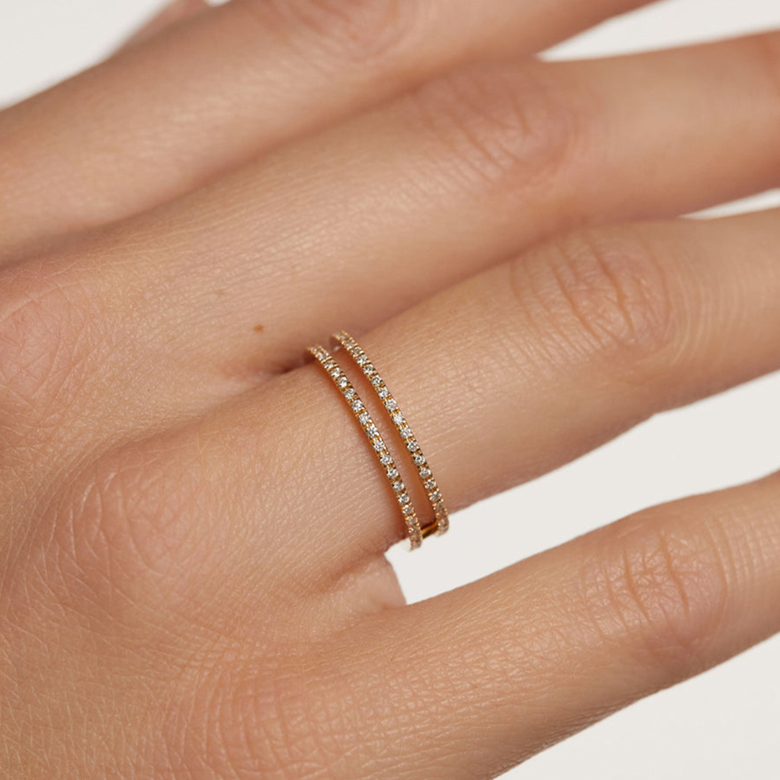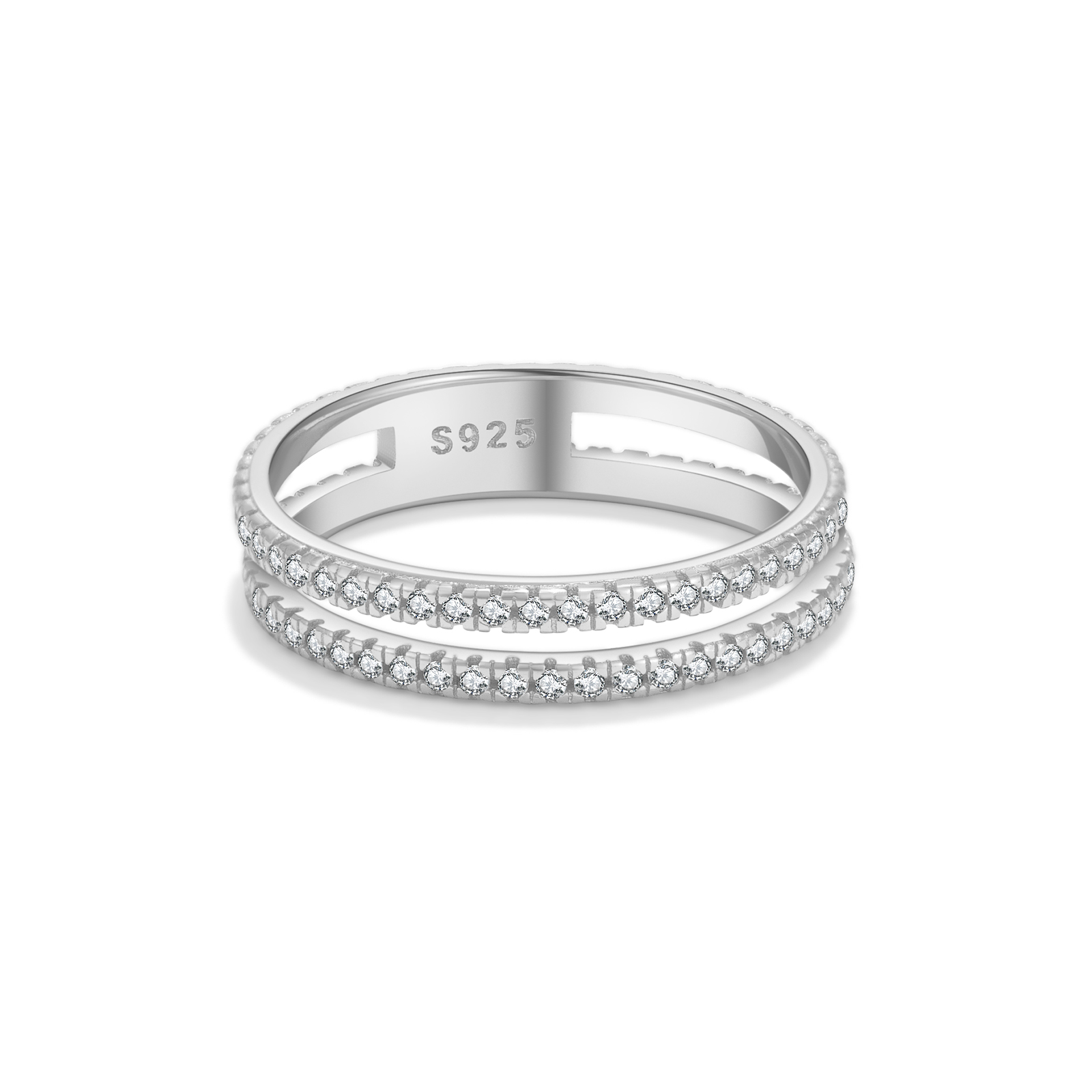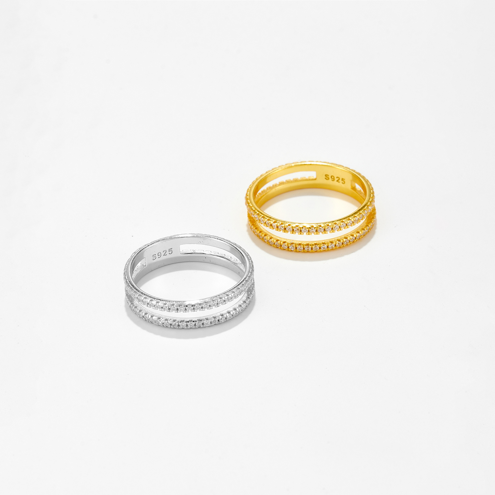 925 Silver Gold-Plated Double-Band Pavé Diamond Ring-MMR240