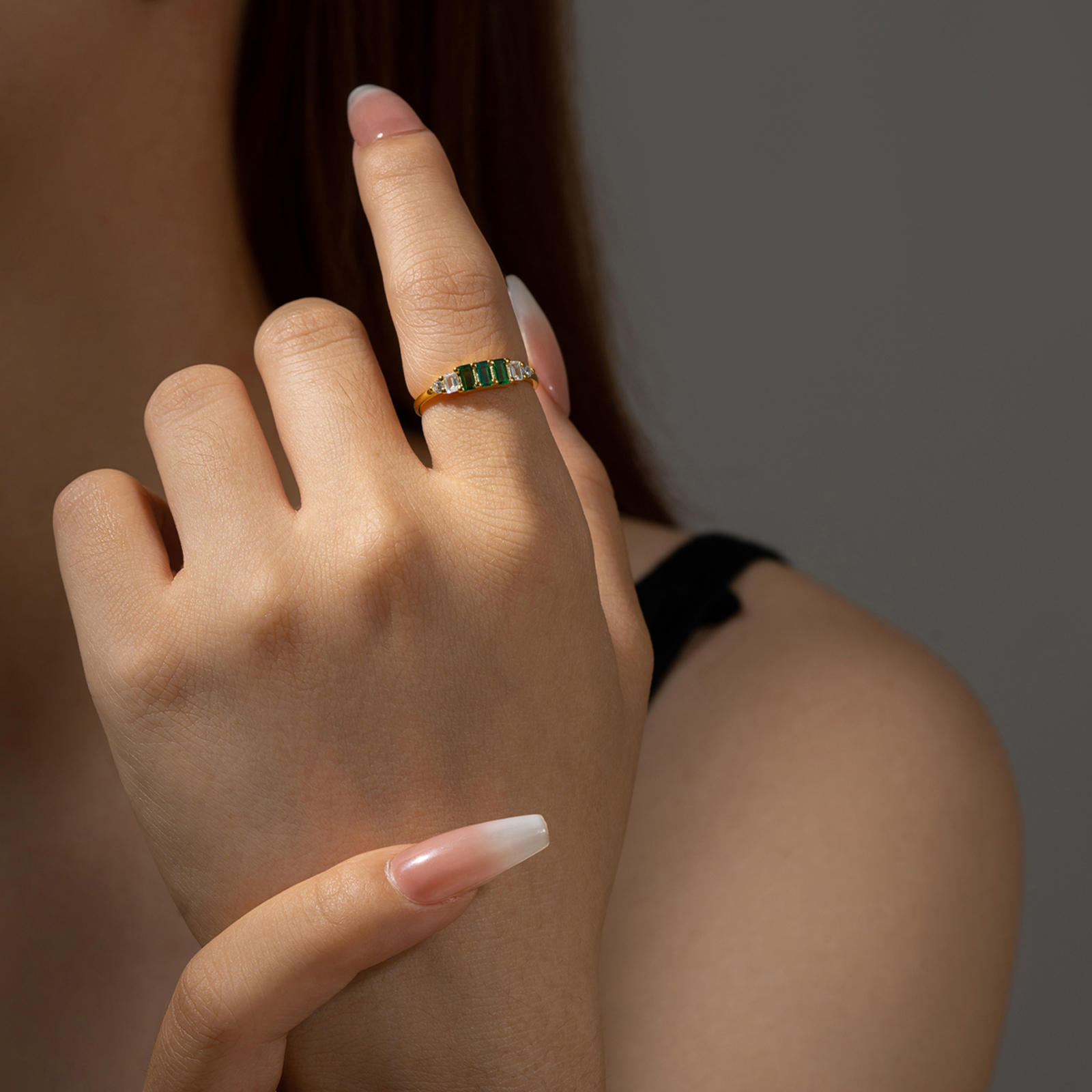 925 Silver Gold-Plated Emerald & Diamond Band Ring-MMR354