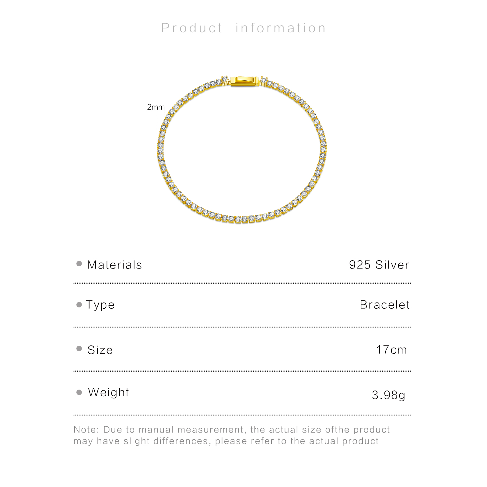 Be the first to review “925 Silver Gold Plated 2.0mm CZ Tennis Bracelet, Size 17cm, Prong Setting-MMB88”