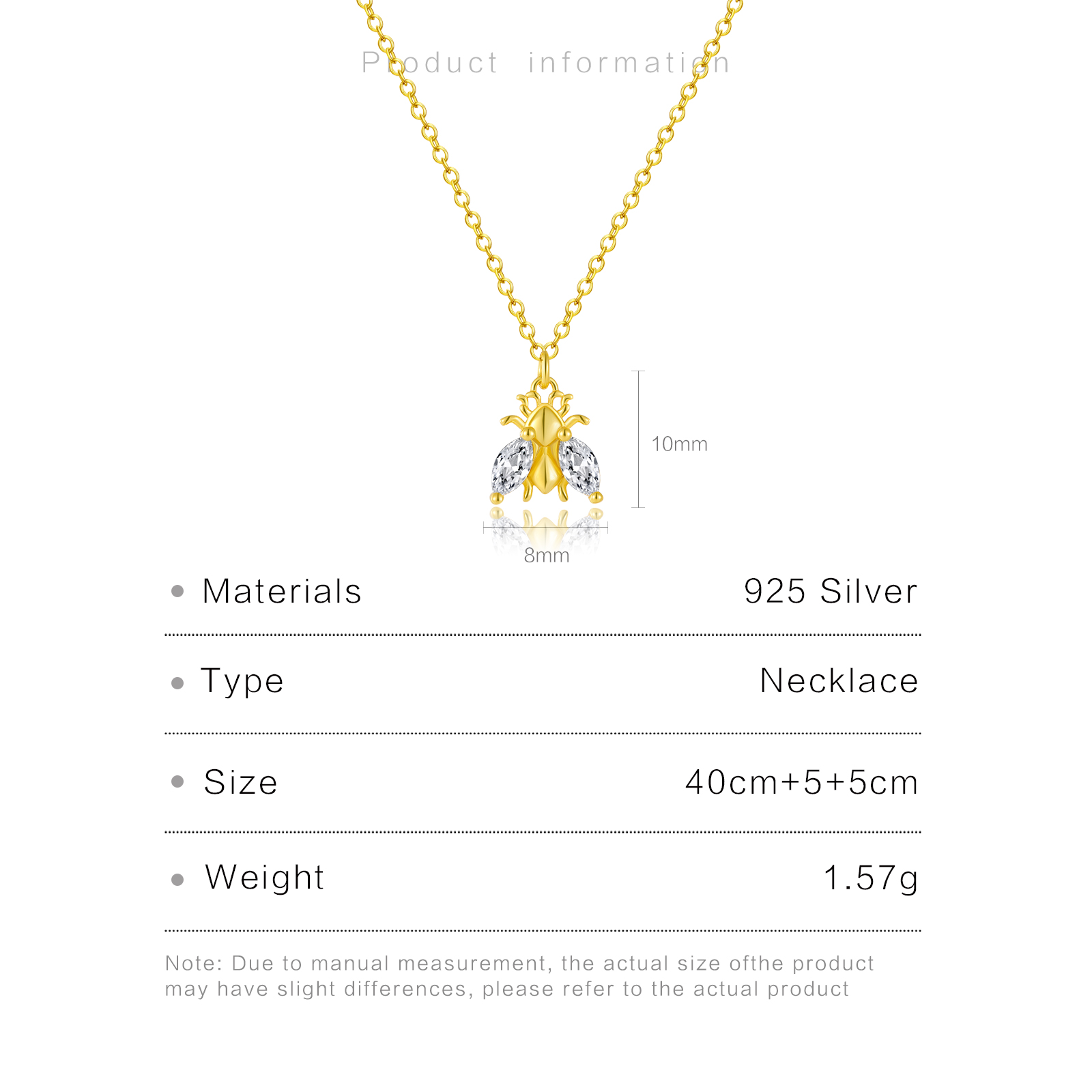 | Size | Pendant:10*8mm Chain Length:40+5+5cm |