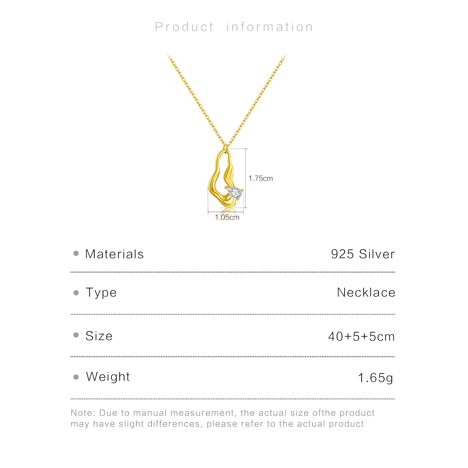 925 Silver Gold-Plated Irregular Zircon Pendant Necklace-MMN585