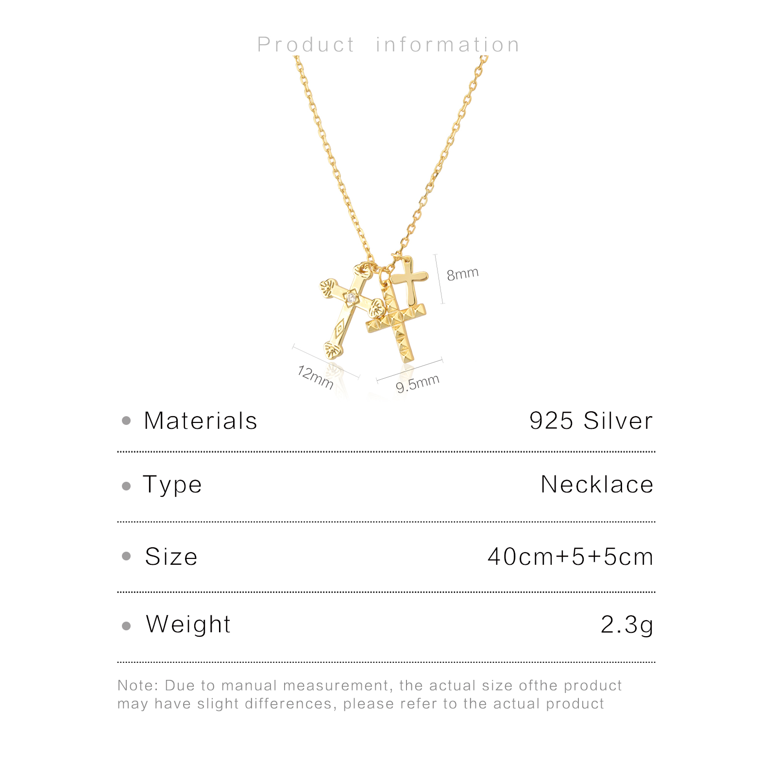925 Silver Gold-Plated Layered Cross Pendant Necklace-MMN135