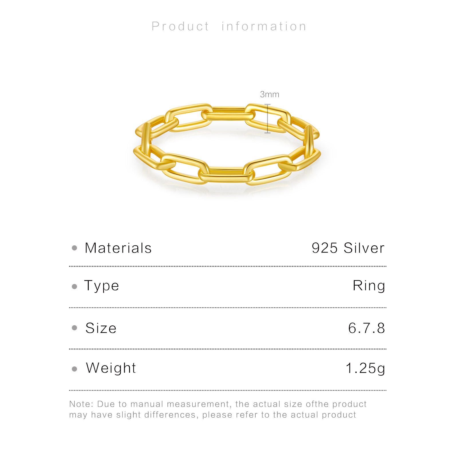 Be the first to review “925 Silver Gold-Plated Link Chain Ring-MMR82”