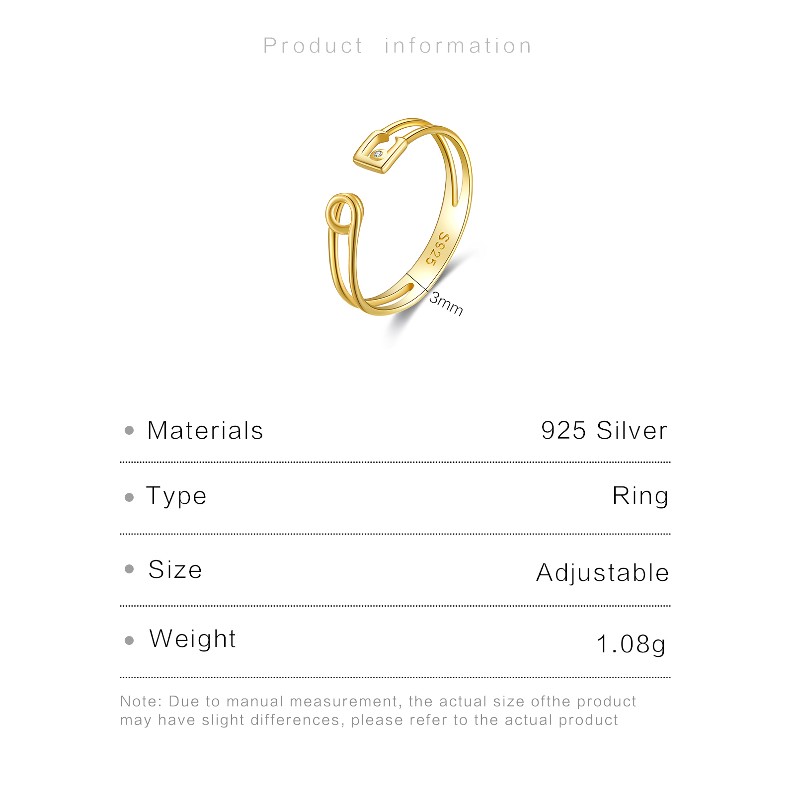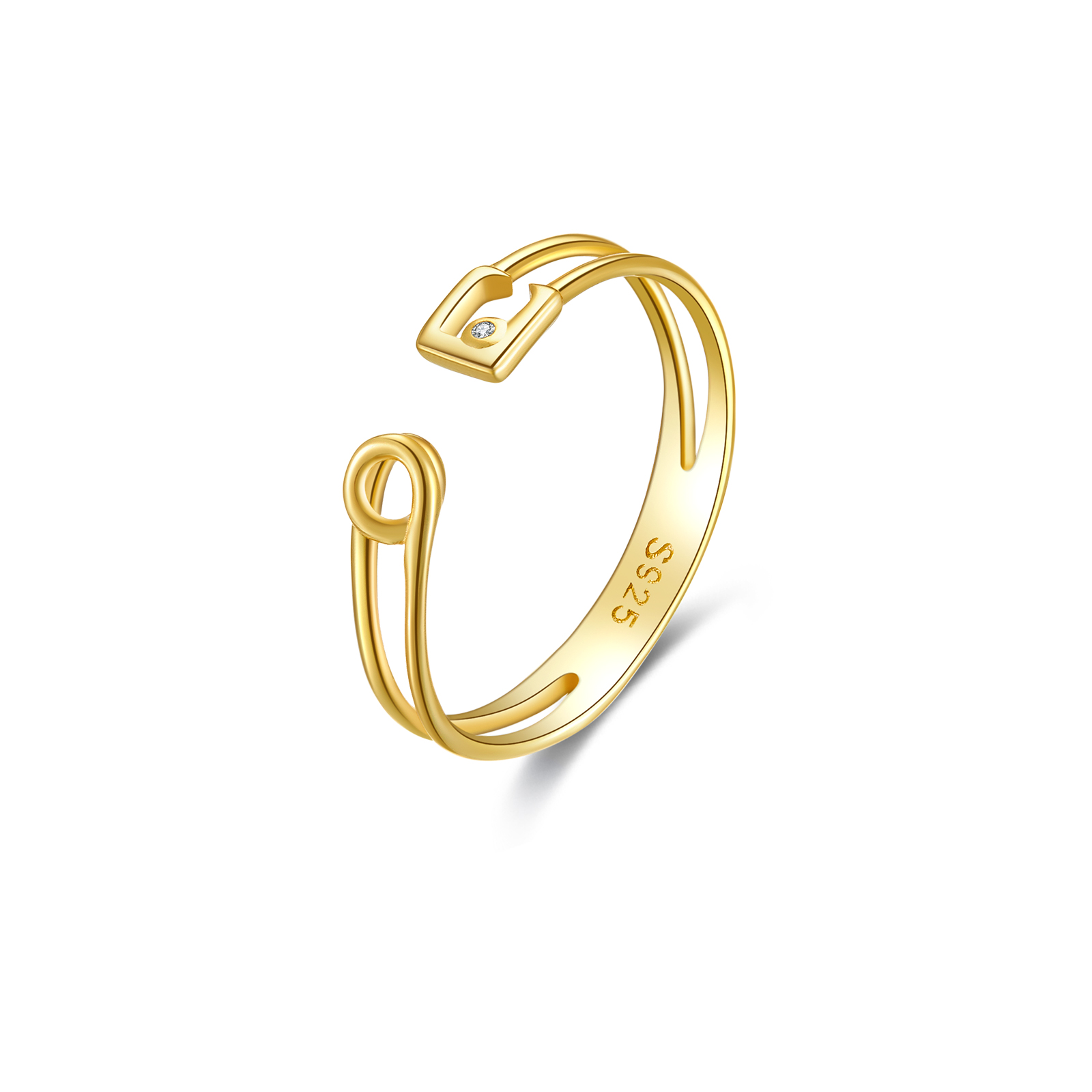 925 Silver Gold-Plated Lock & Key Open Ring-MMR322