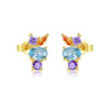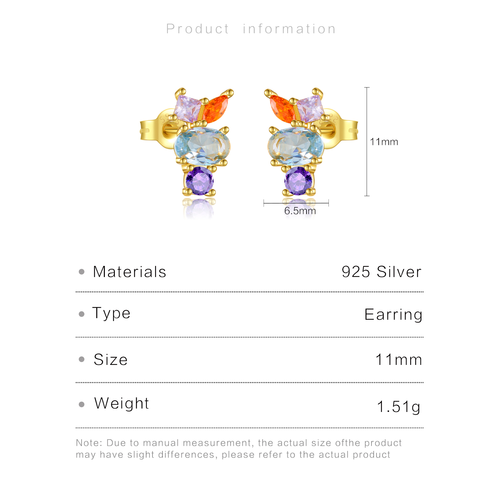 925 Silver Gold-Plated Multi-Color Gem Stud Earrings-MME954