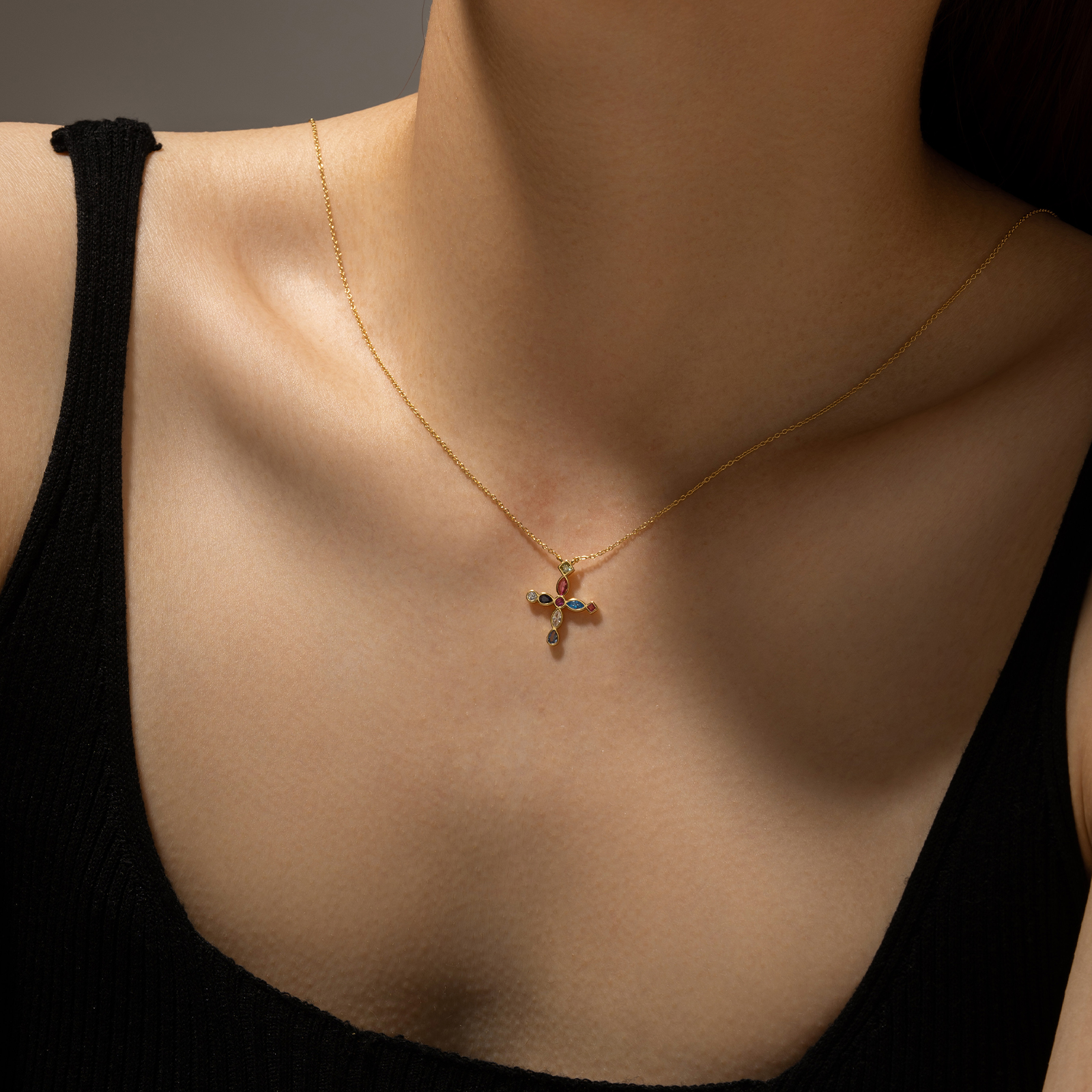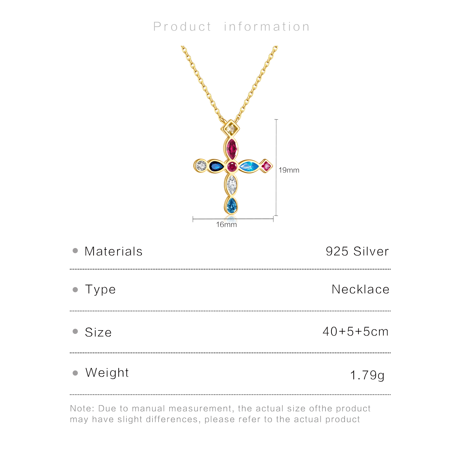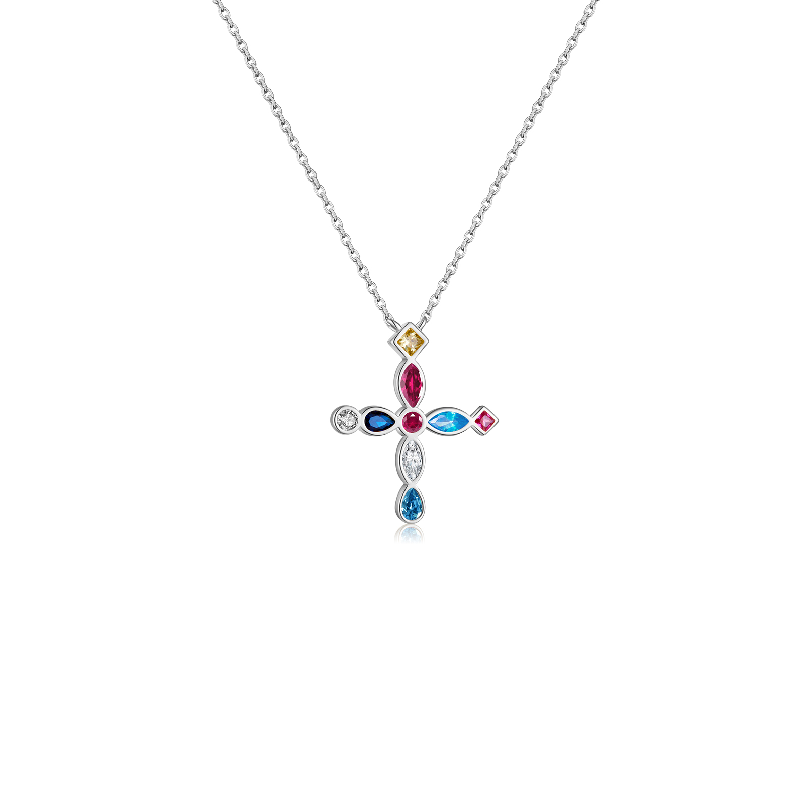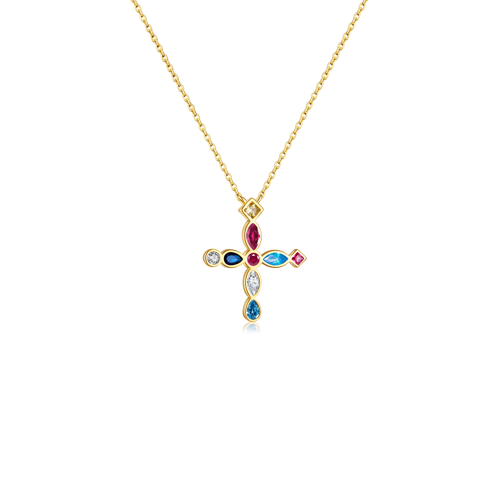 Be the first to review “925 Silver Gold-Plated Multicolor Gem Cross Pendant Necklace-MMN154”