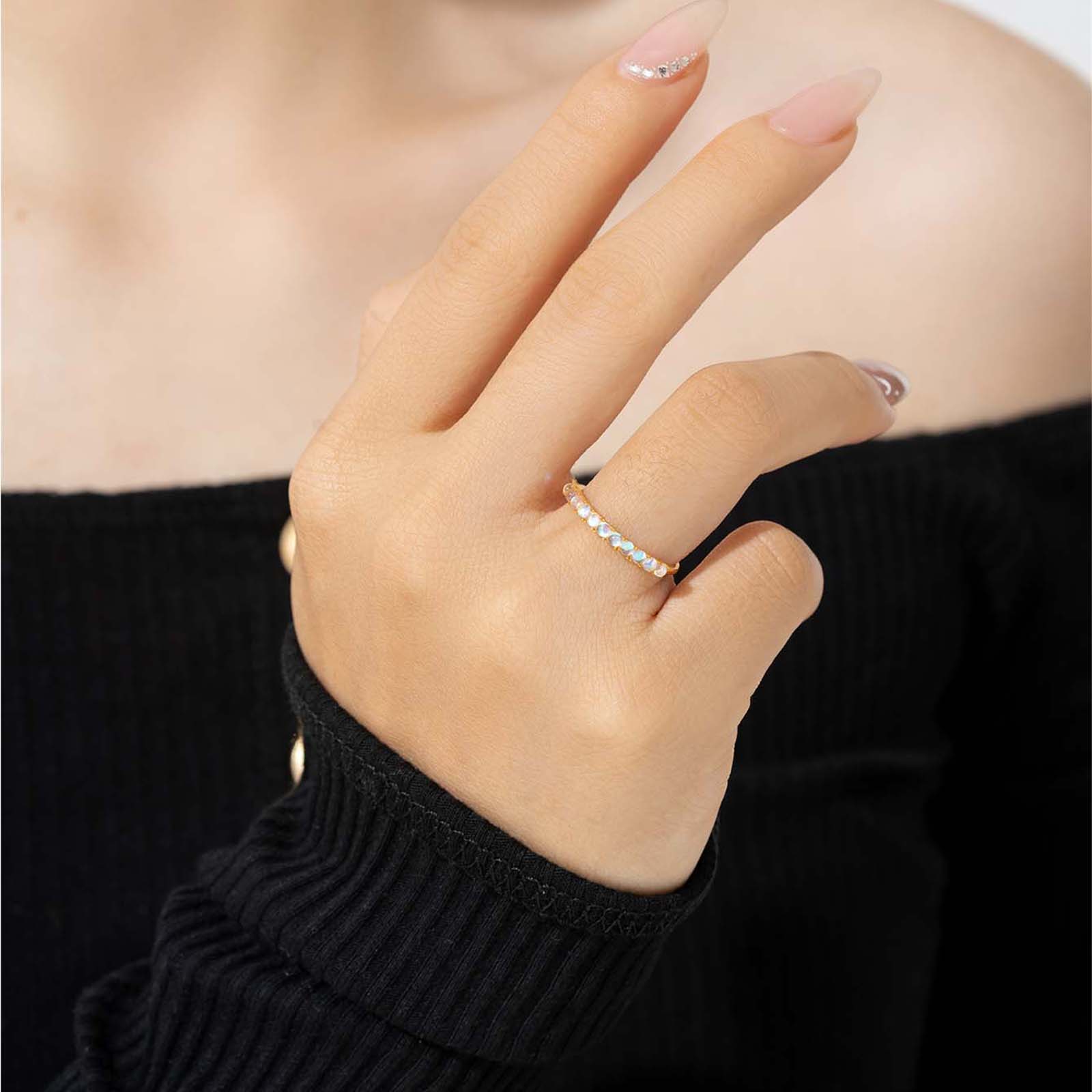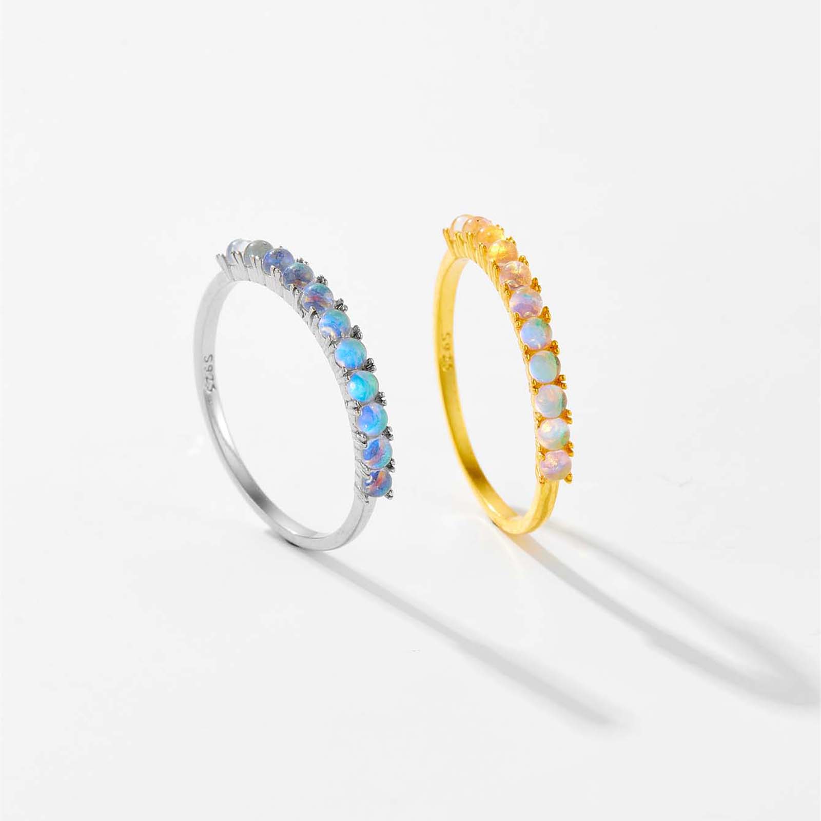 925 Silver Gold-Plated Opal & Pearl Cluster Band Ring-MMR291