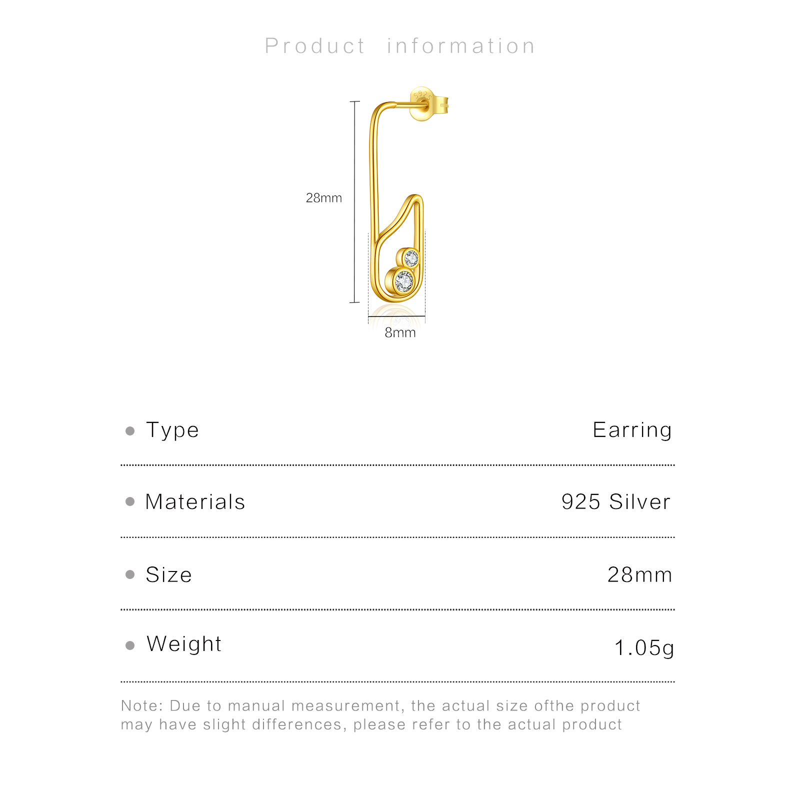 Be the first to review “925 Silver Gold-Plated Safety Pin Bezel Set CZ Huggie Earrings-MME1061”