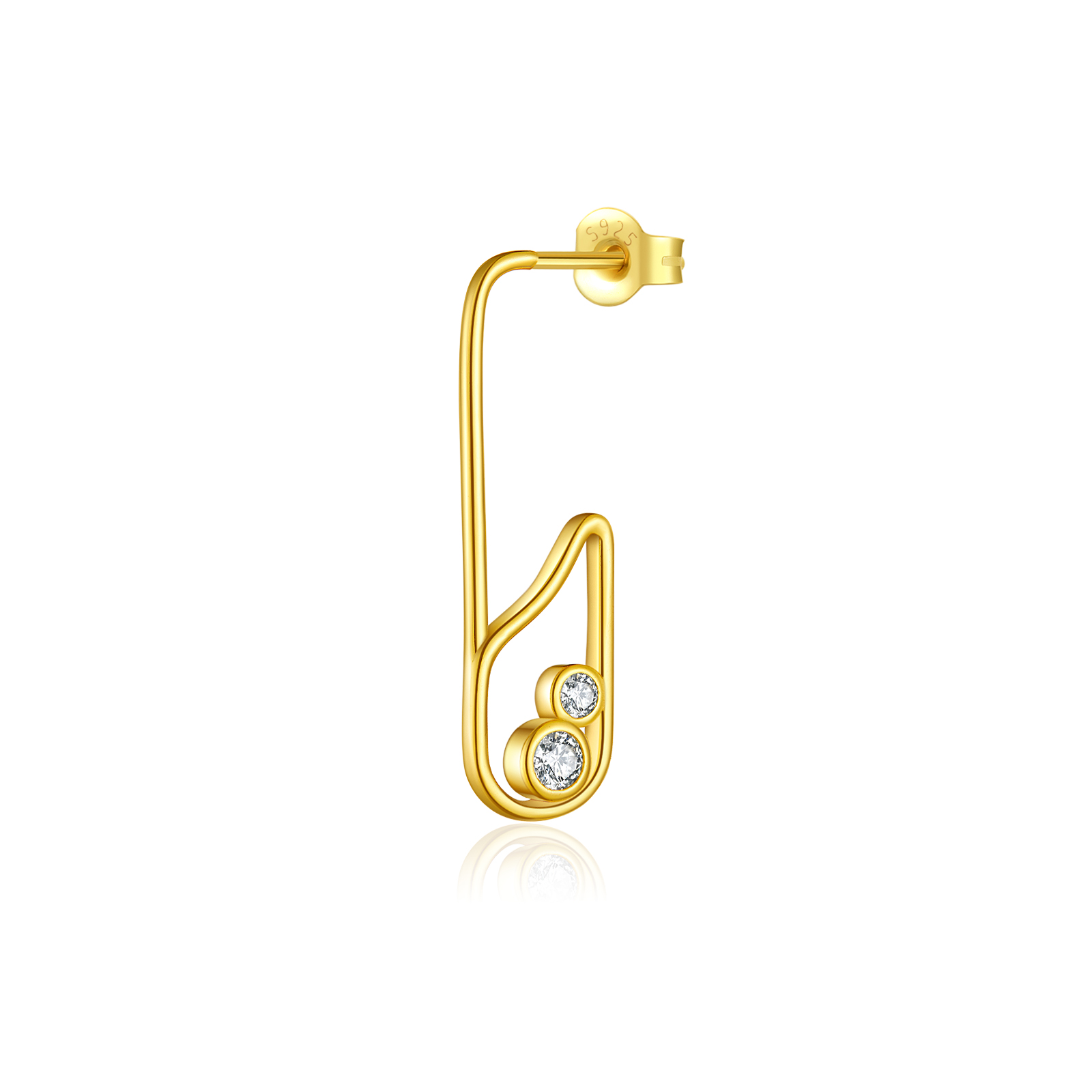 925 Silver Gold-Plated Safety Pin Bezel Set CZ Huggie Earrings-MME1061