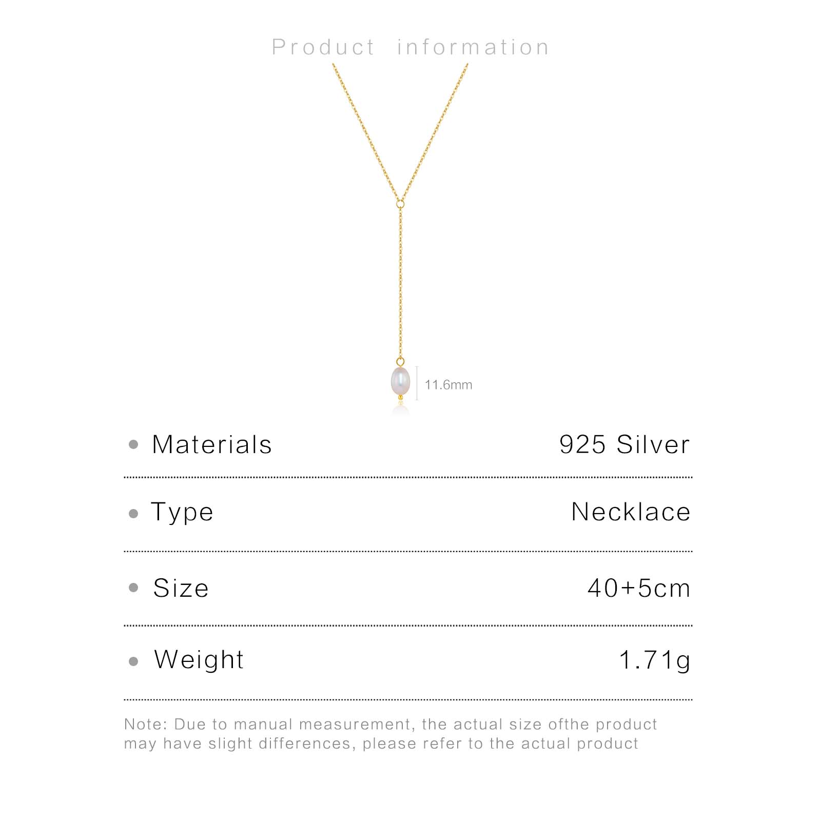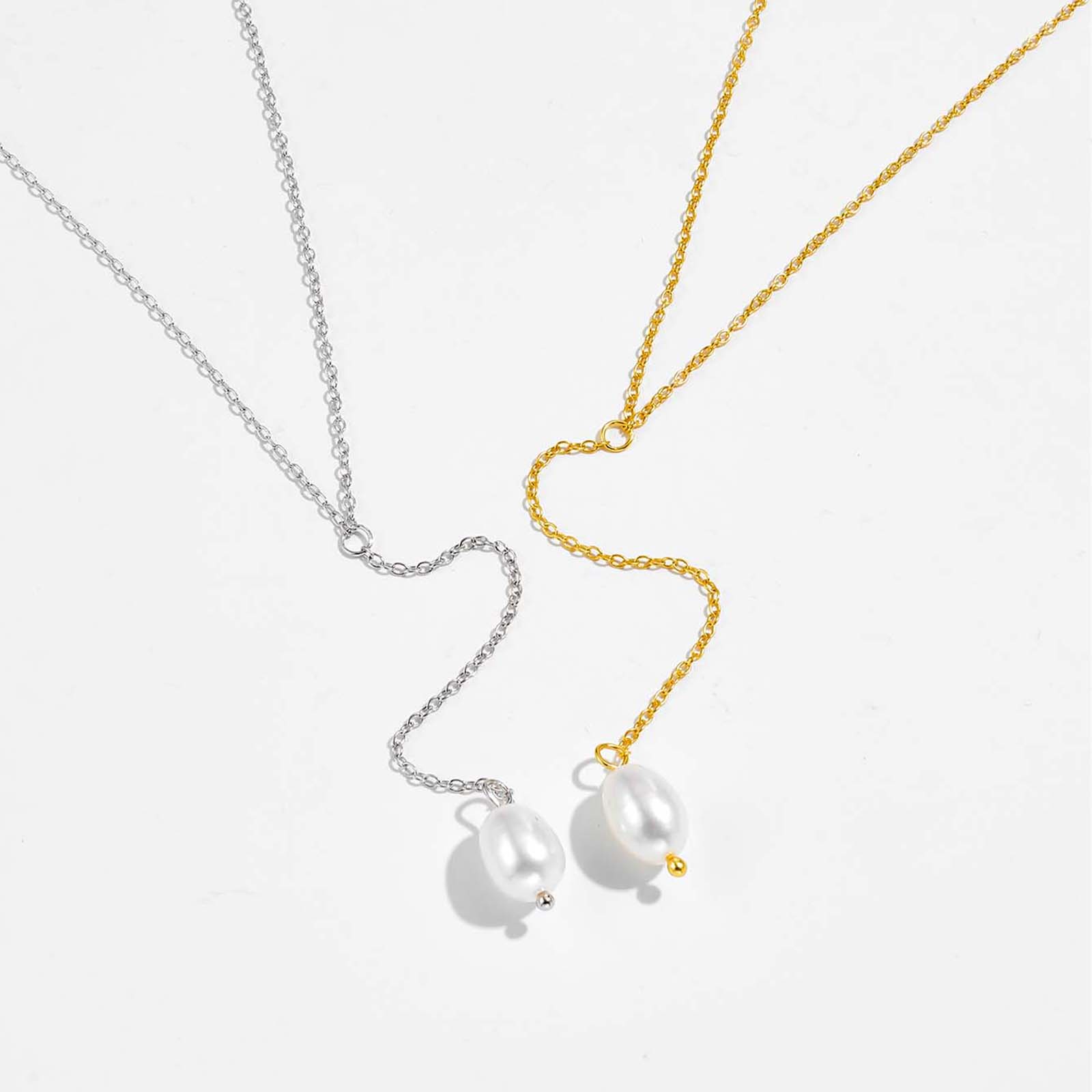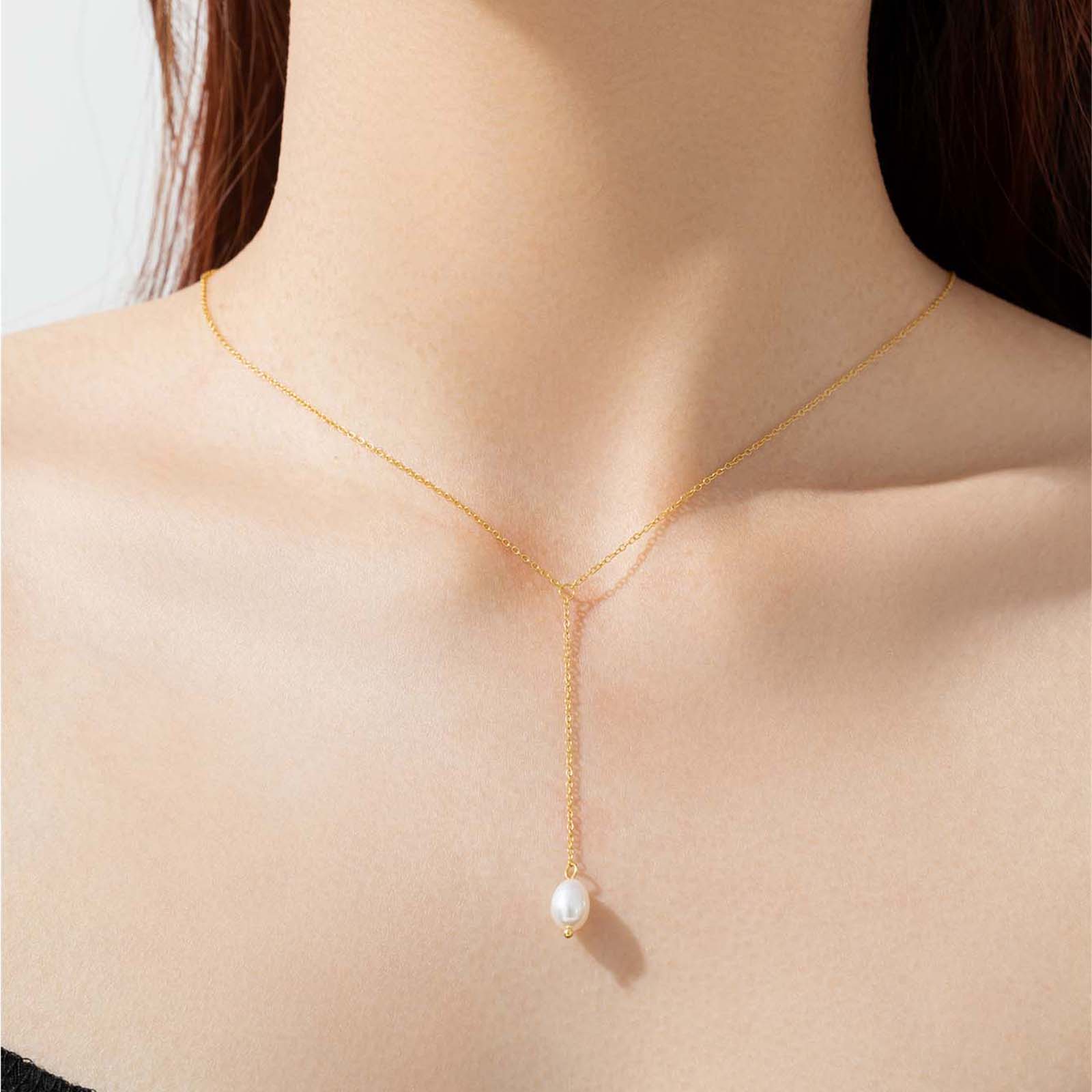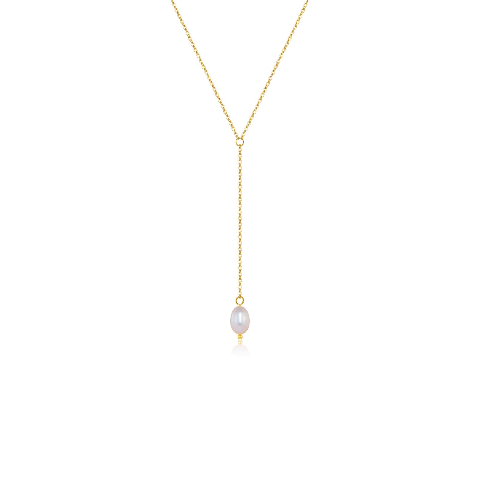 925 Silver Gold-Plated Pearl Lariat Necklace-MMN452
