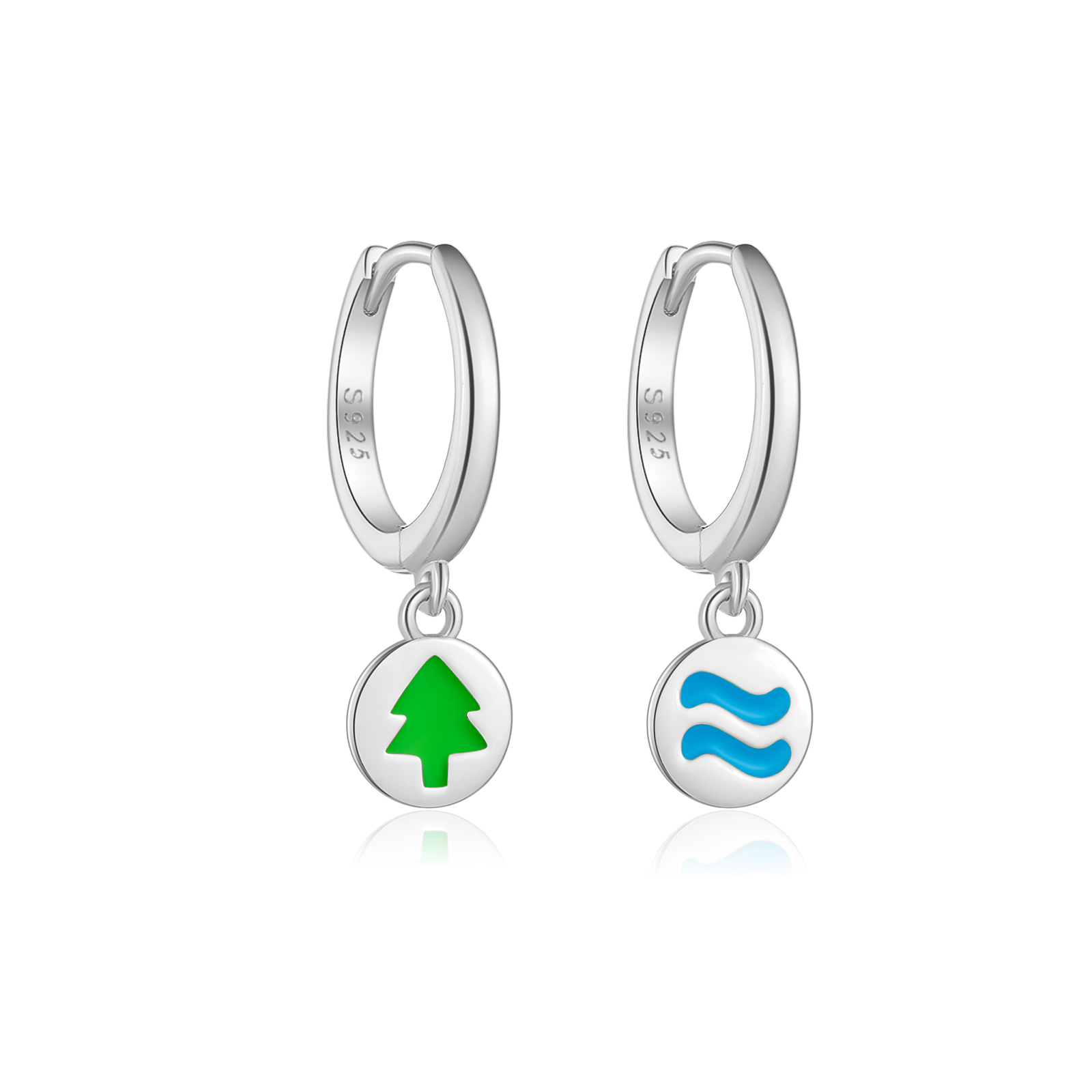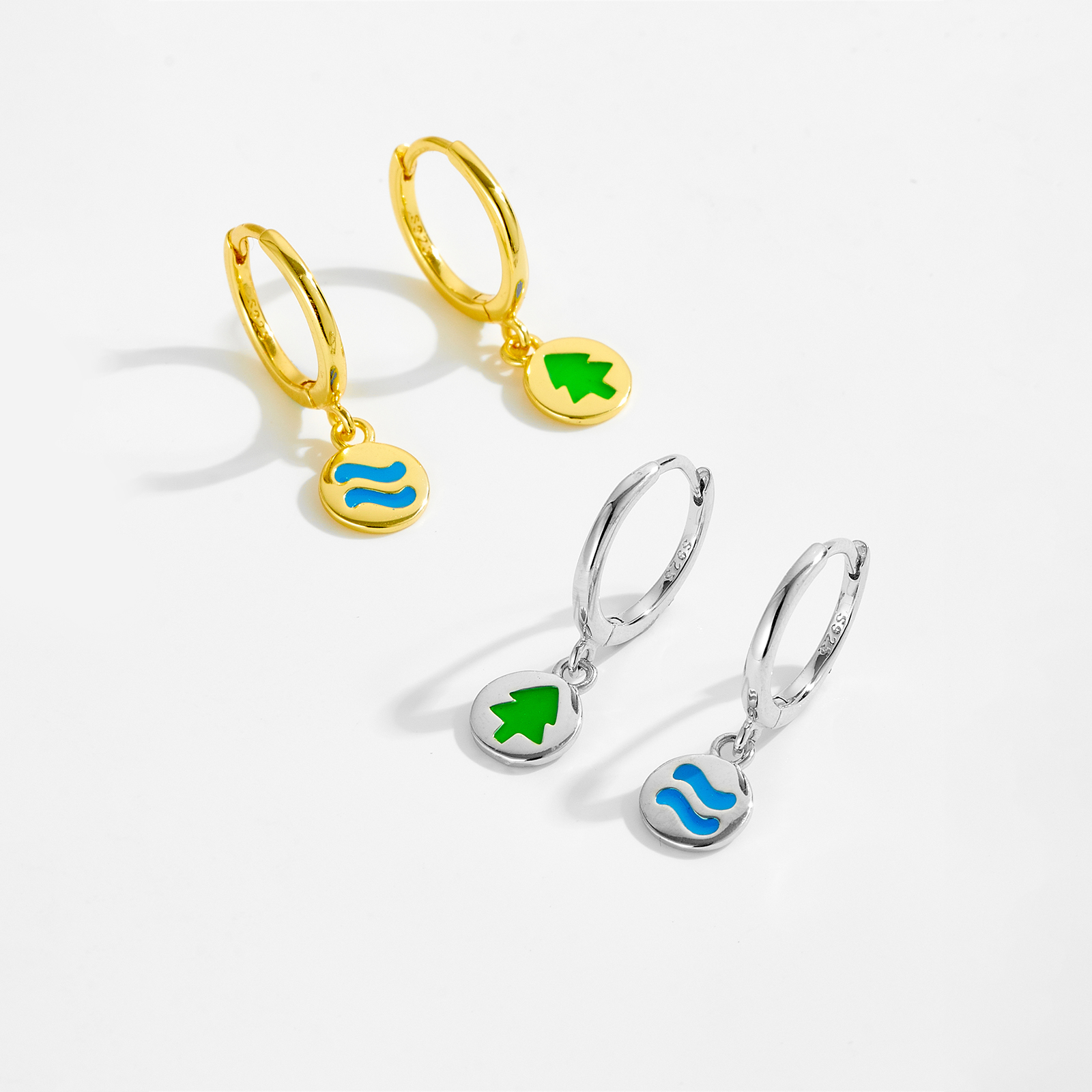 925 Silver Gold Plated Resin River/Tiny Tree Pendant Huggie Earrings-MME1084