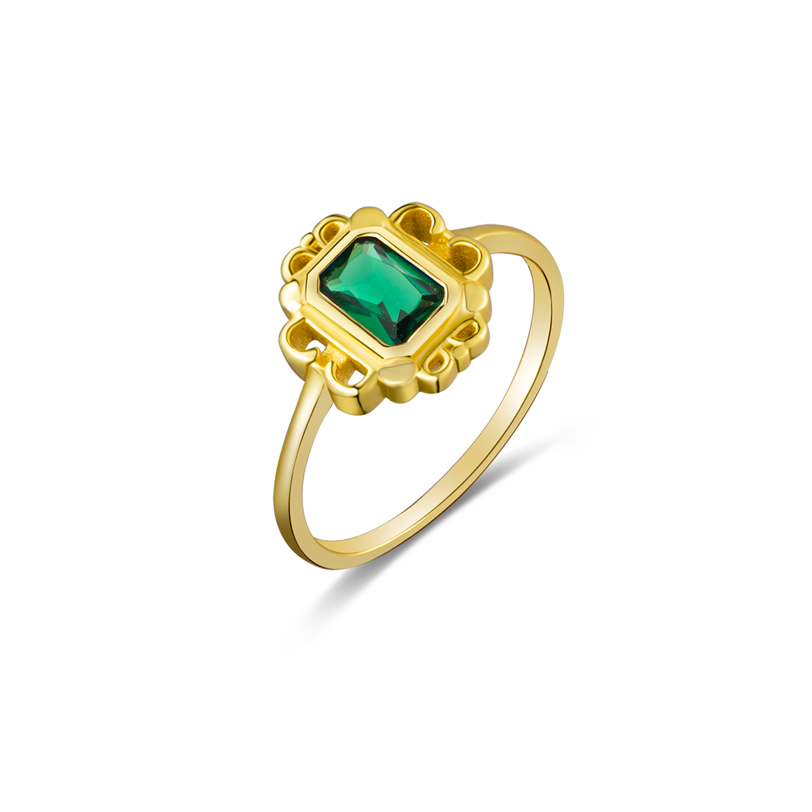 925 Silver Gold-Plated Square Blue Gem Carved Ring-MMR183