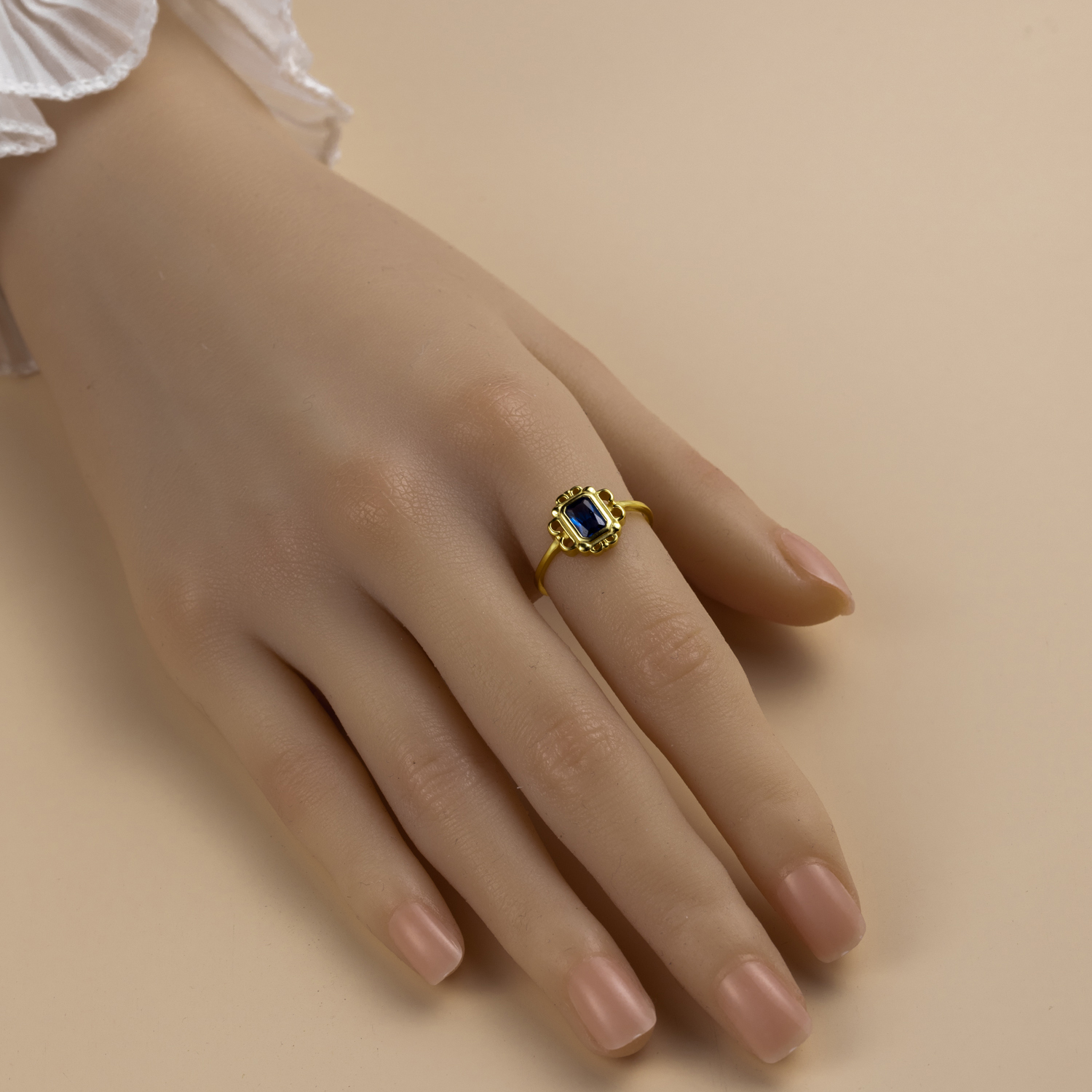 Be the first to review “925 Silver Gold-Plated Square Blue Gem Carved Ring-MMR183”