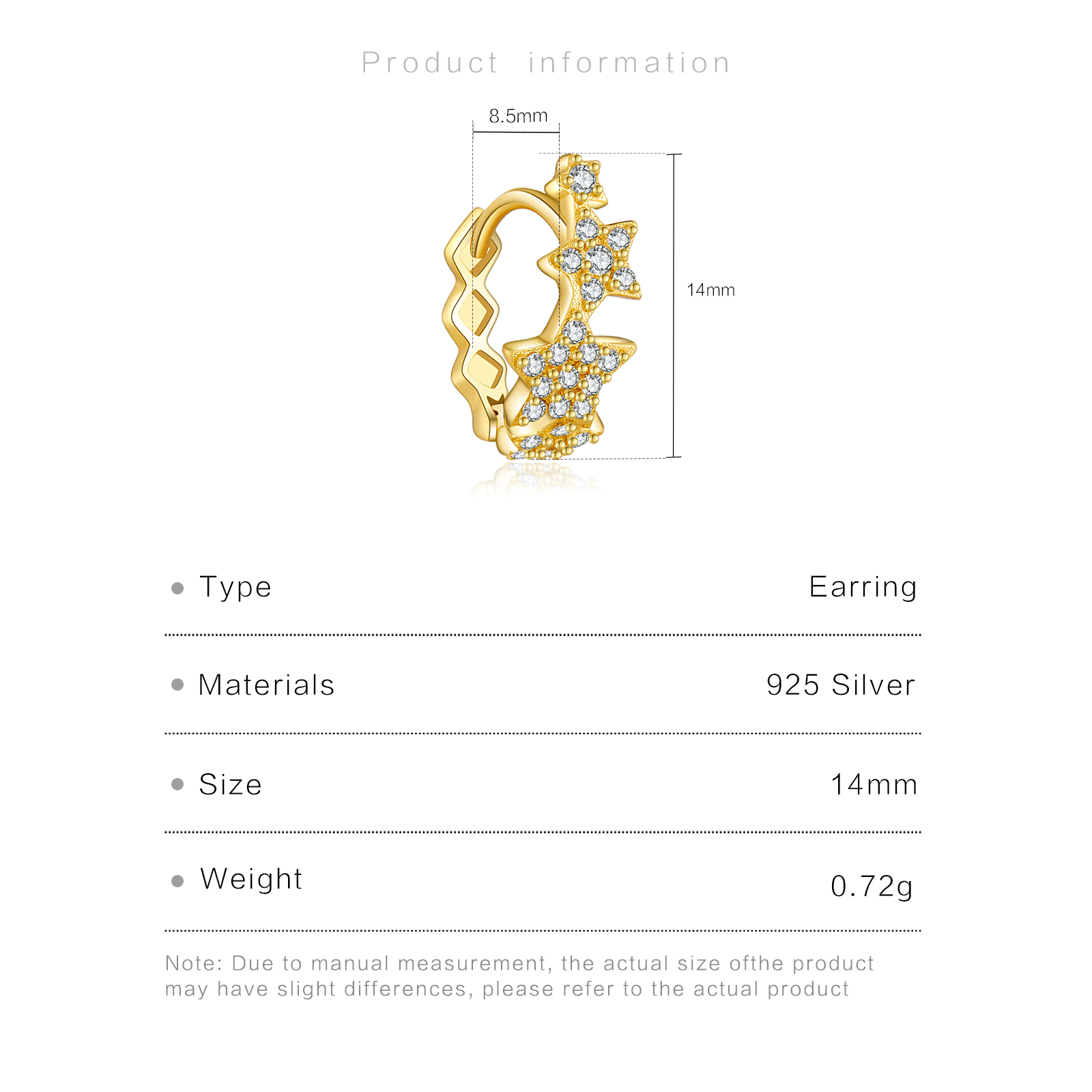 925 Silver Gold Plated Star-shaped Wavy Round Stone Hoop Earrings-MME1072