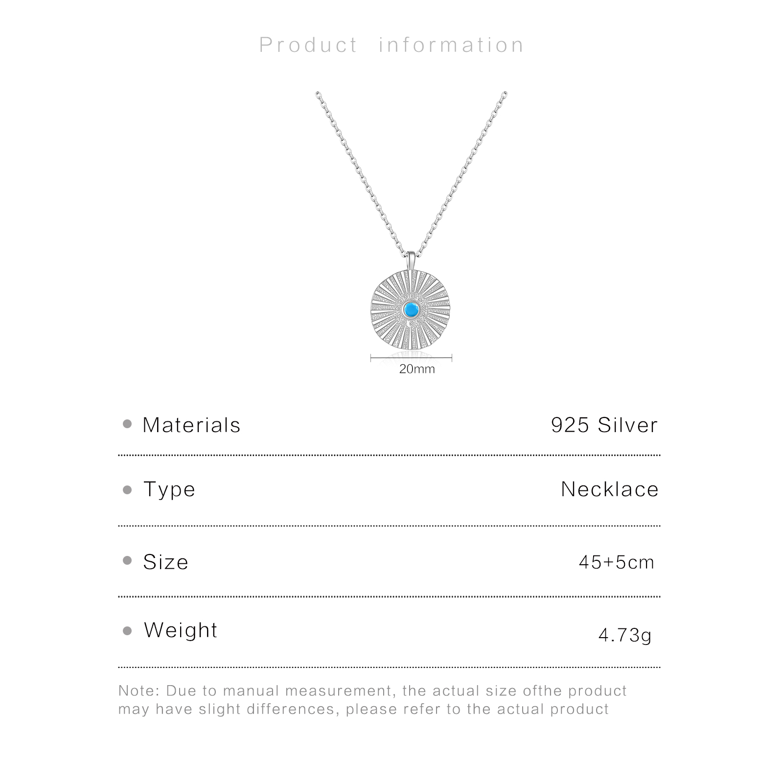 | Size | Pendant:20mm Chain Length:45cm |