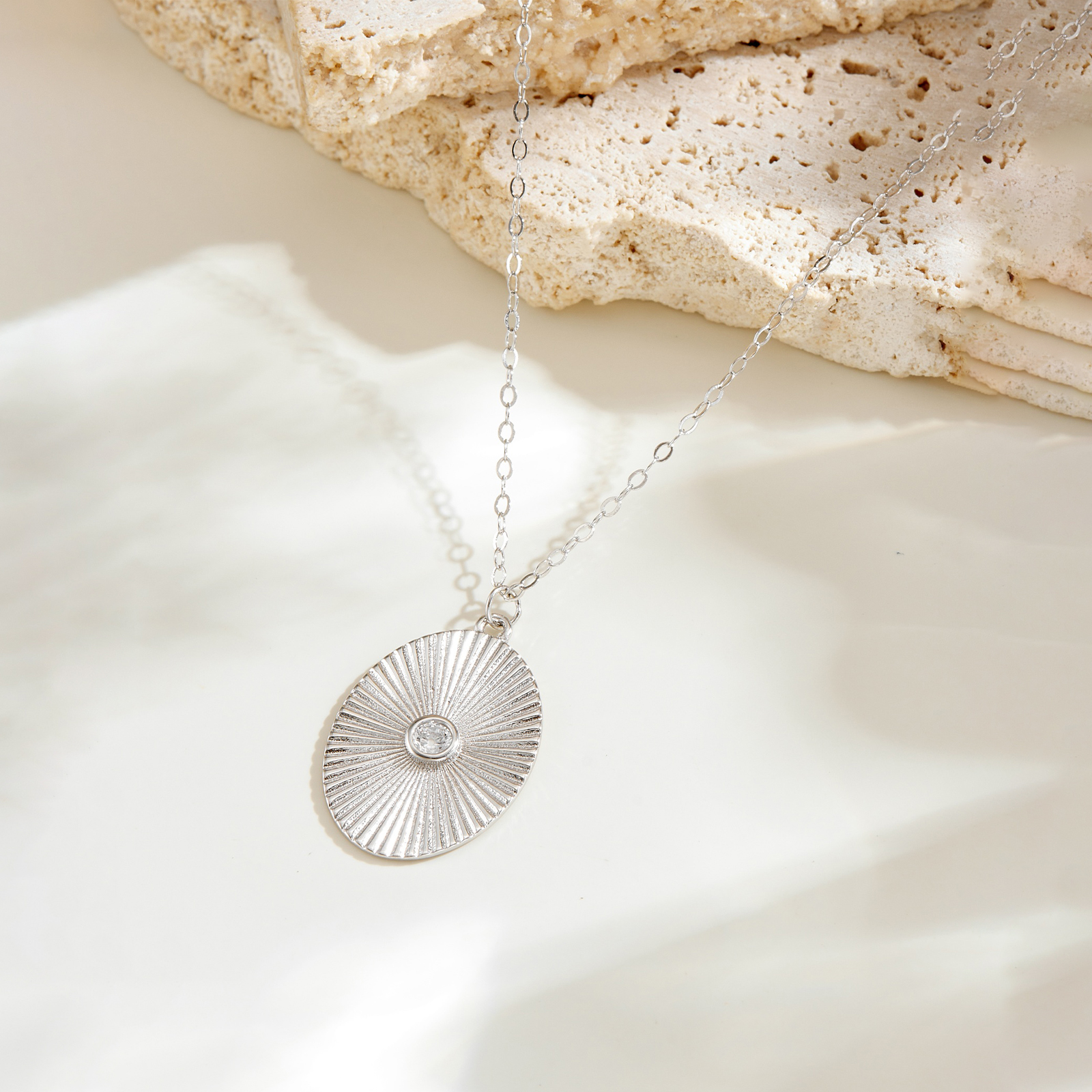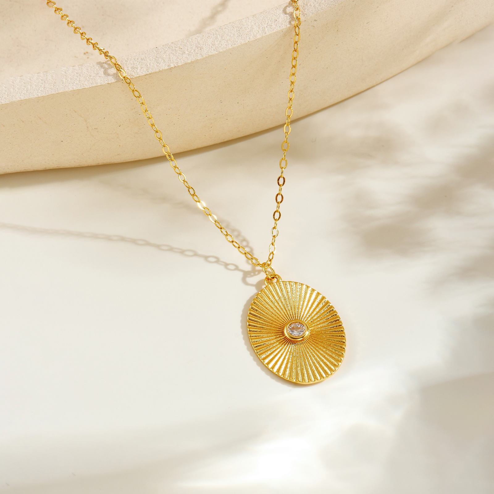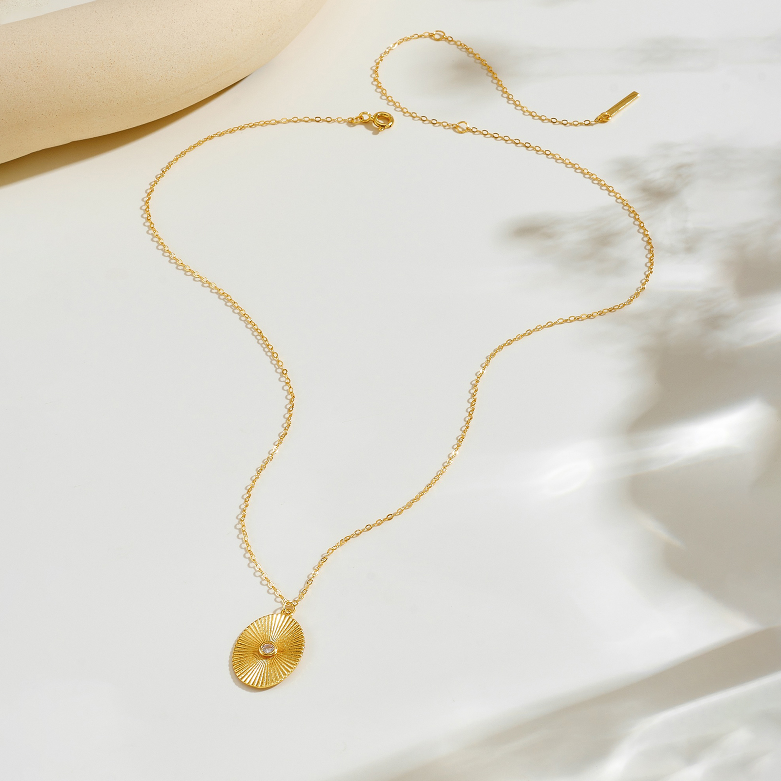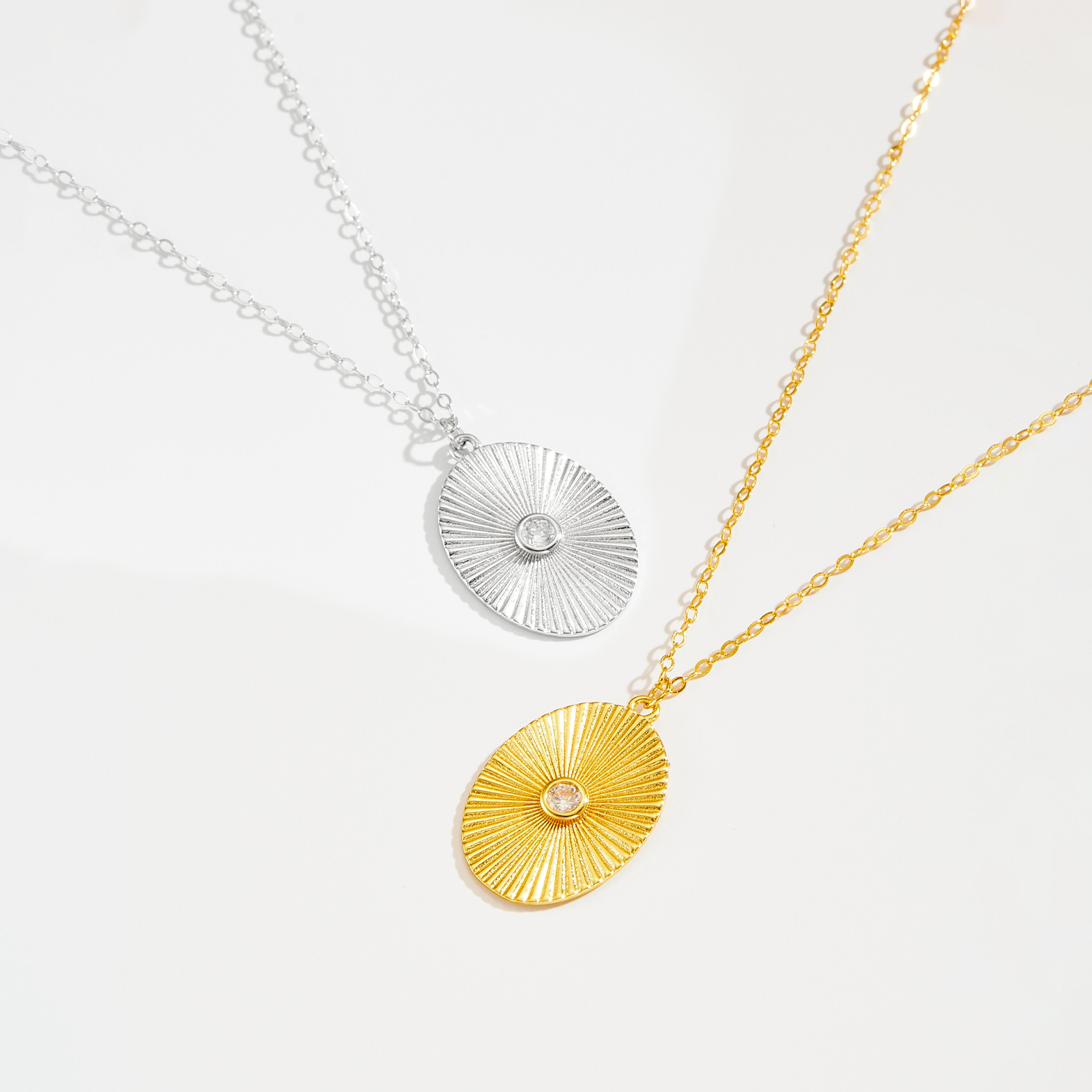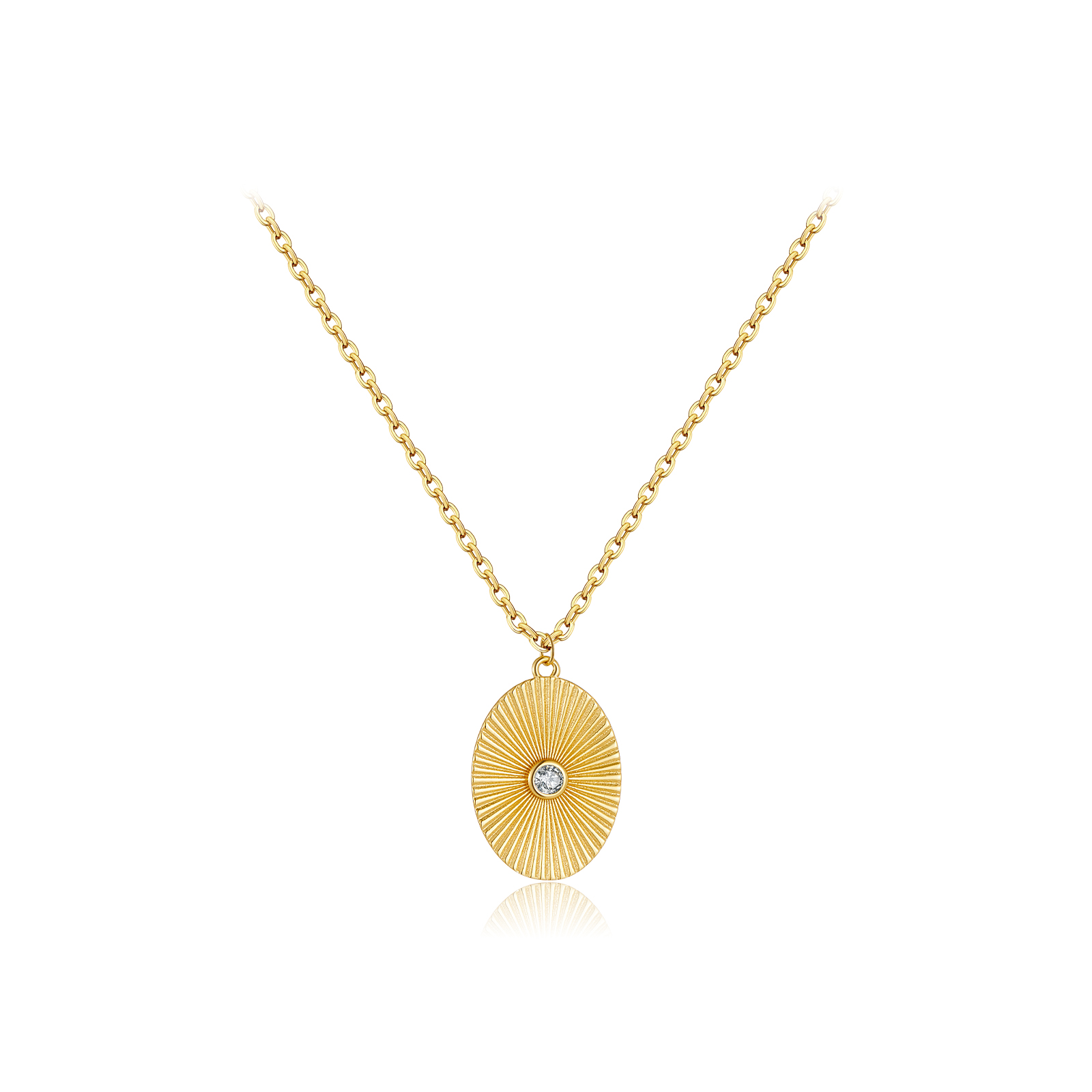 Be the first to review “925 Silver Gold-Plated Sunburst Oval Pendant Necklace with CZ-MMN697”