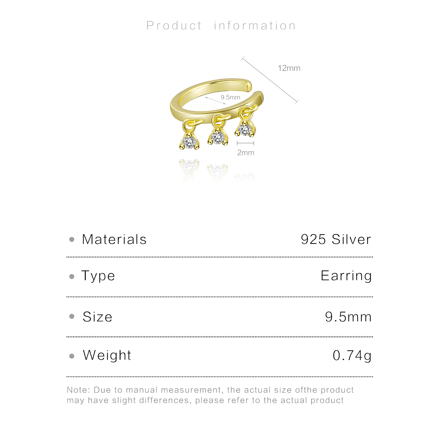| Size | 12mm Height 9.5mm Inner Diameter 2mm CZ Size |