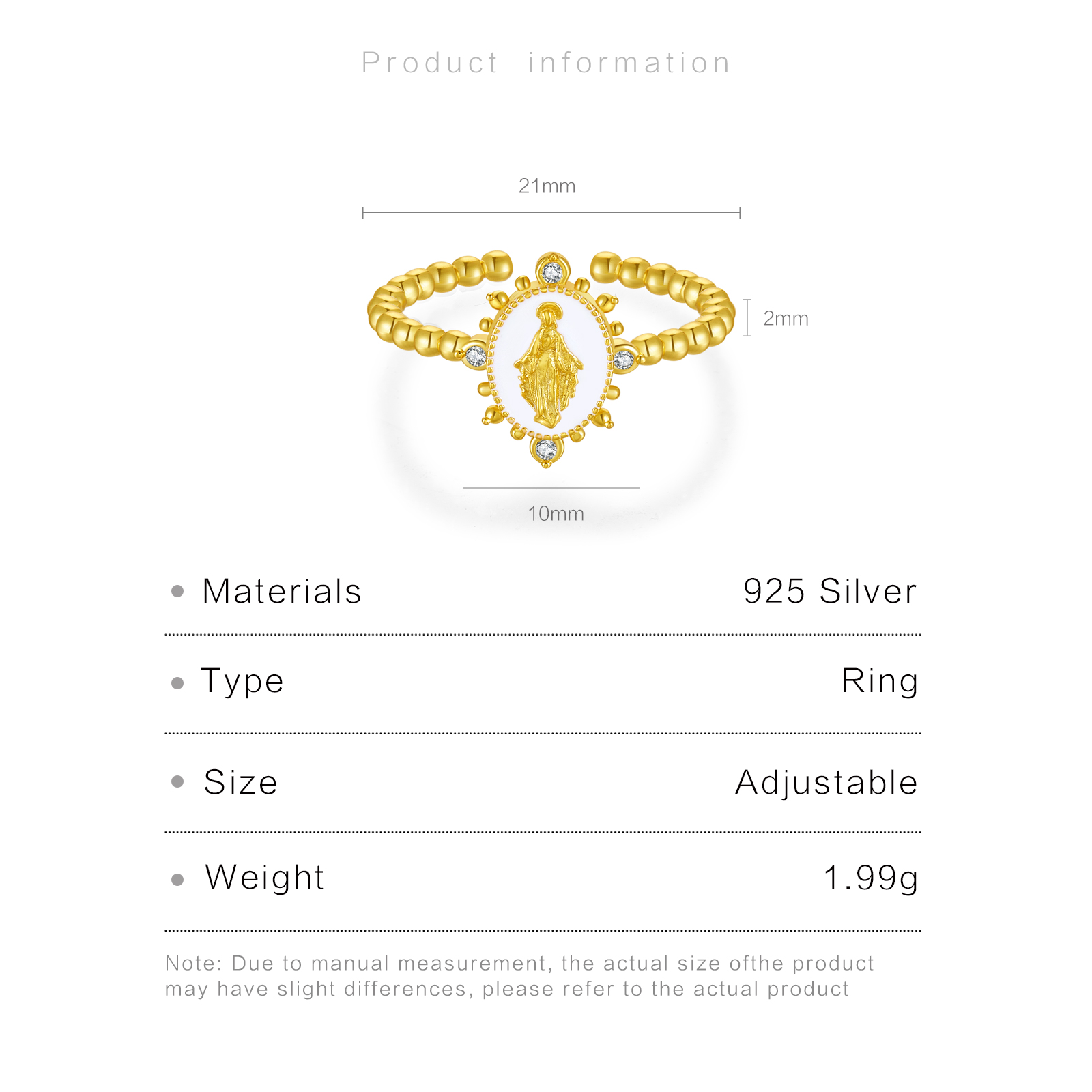 Be the first to review “925 Silver Gold-Plated Virgin Mary Beaded Band Ring-MMR274”
