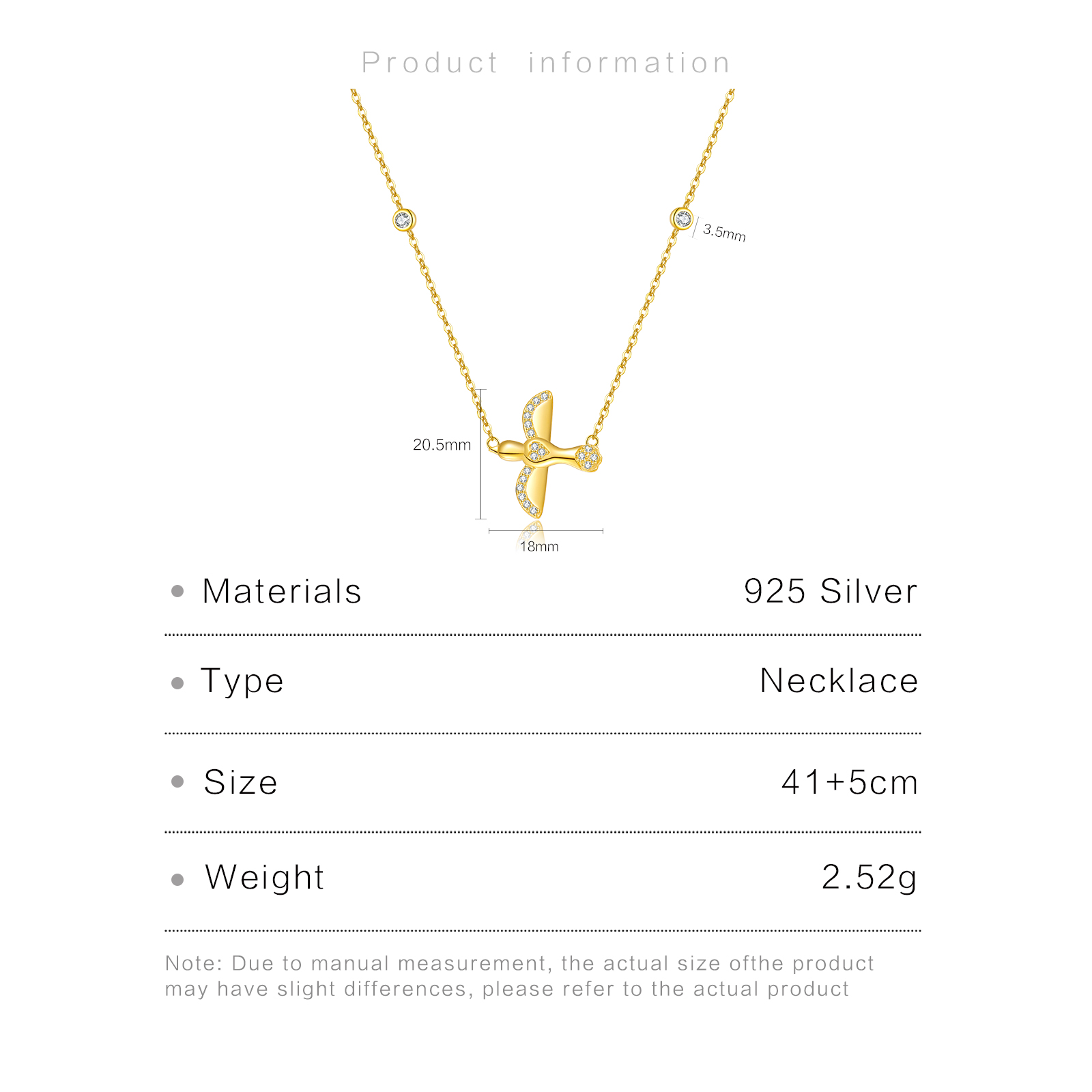 | Size | Bird Pendant 18×20.5mm CZ 3.5mm Chain Length 41+5cm |