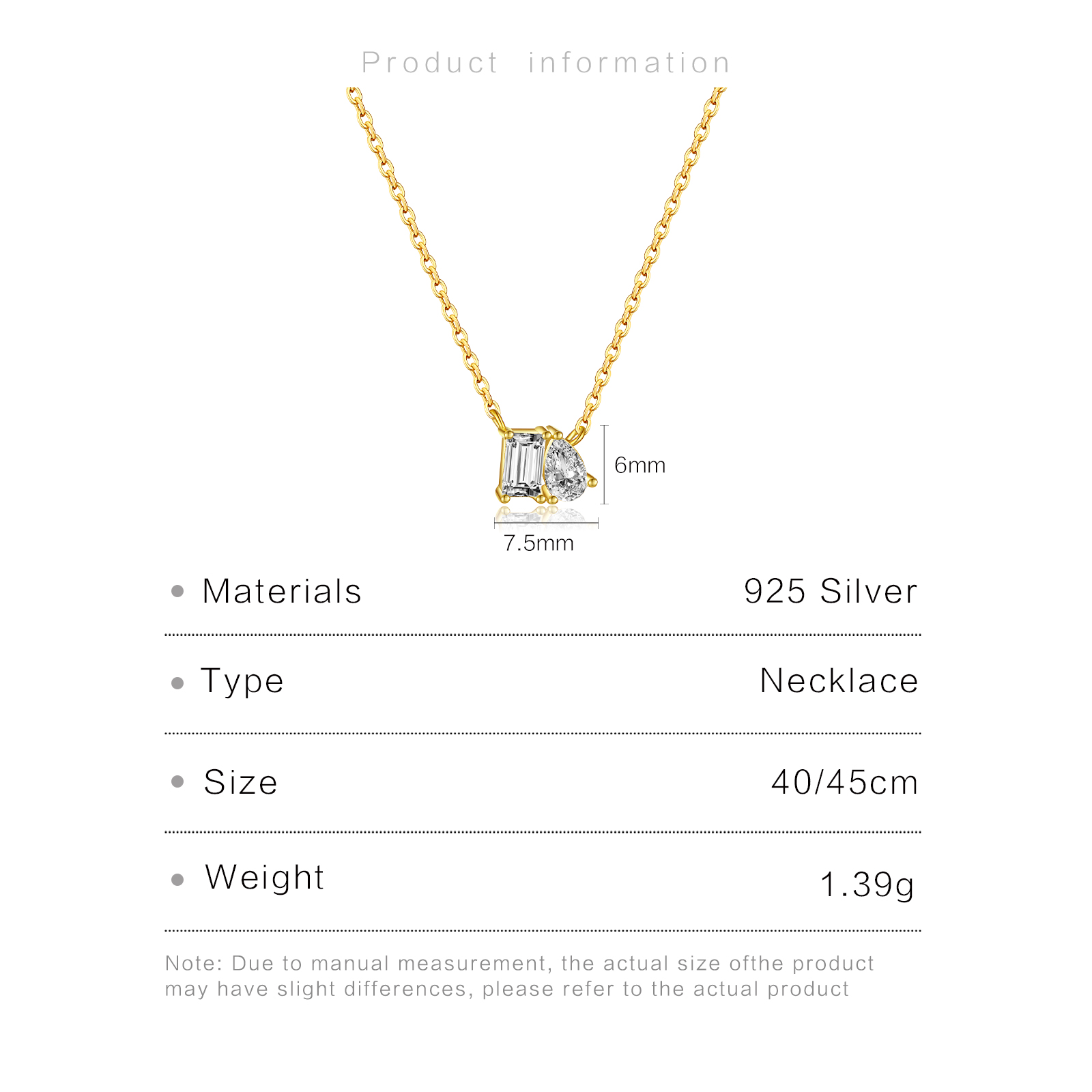 | Color | Plated Rhodium & 18K Golden Color |