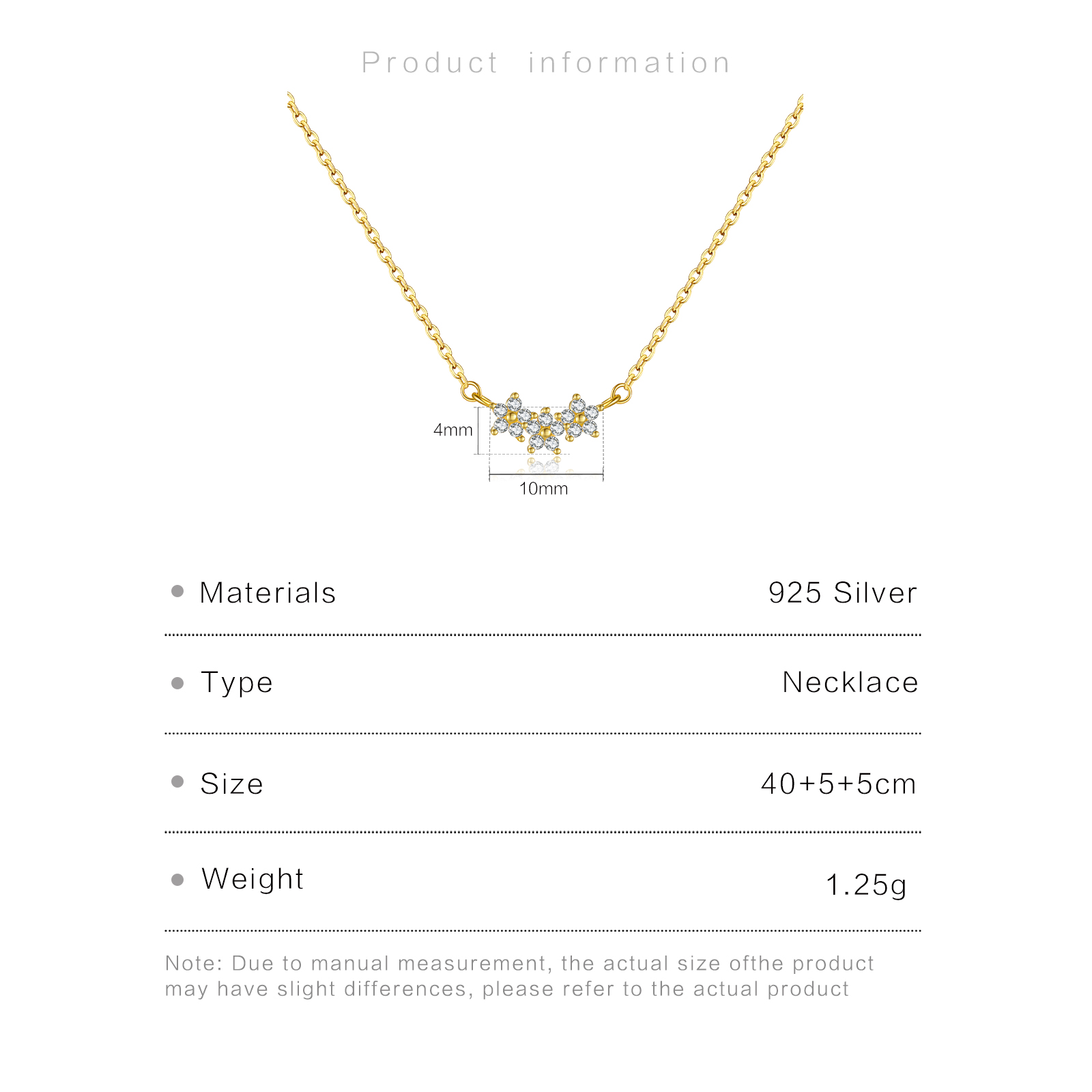 | Color | Plated Rhodium & 18K Golden Color |