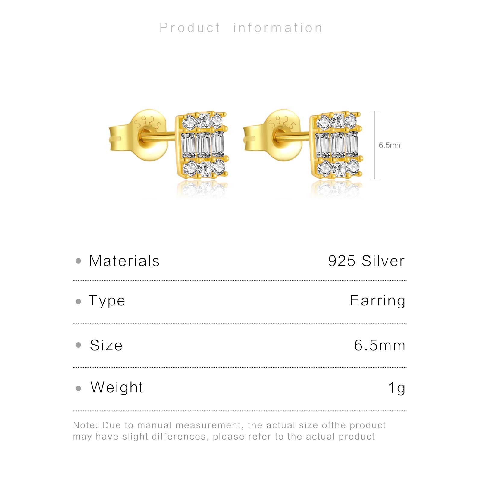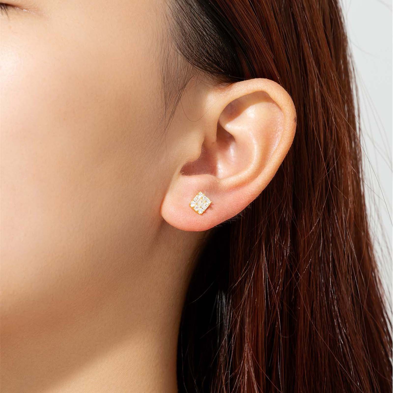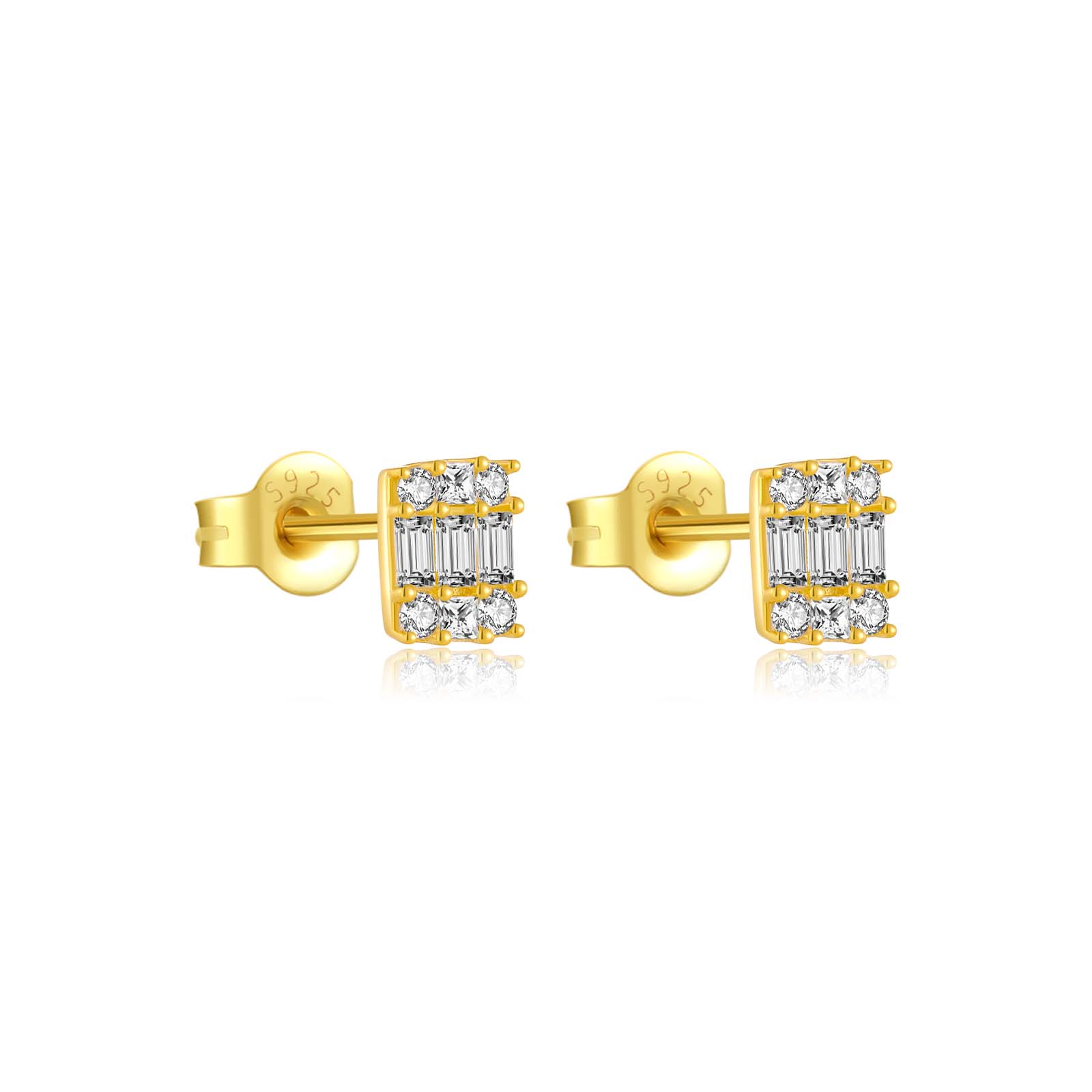 925 Silver Gold Rectangular Full CZ Earrings-MME892