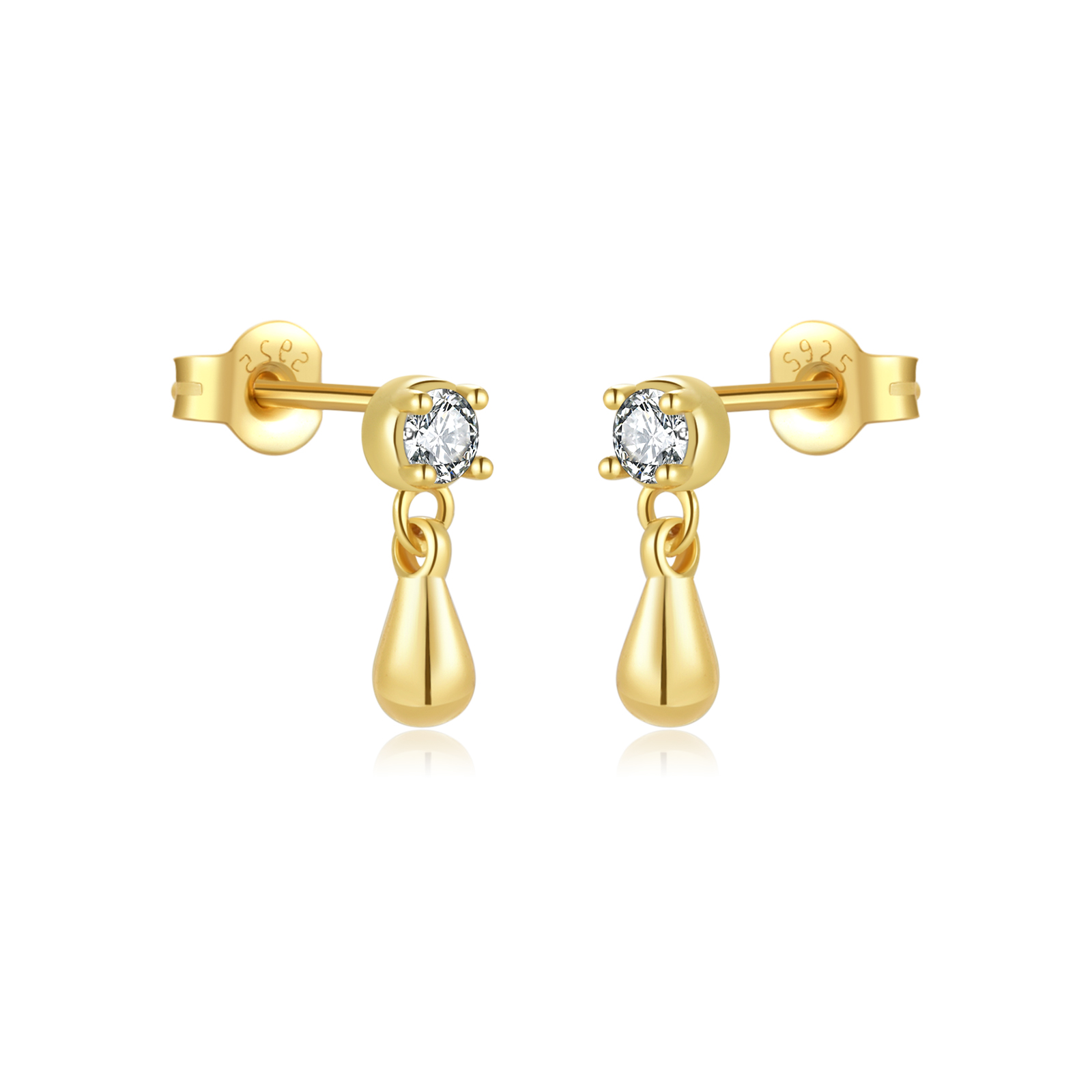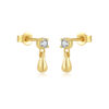 925 Silver Gold Single-CZ Teardrop Charm Minimalist Stud Earrings-MME840