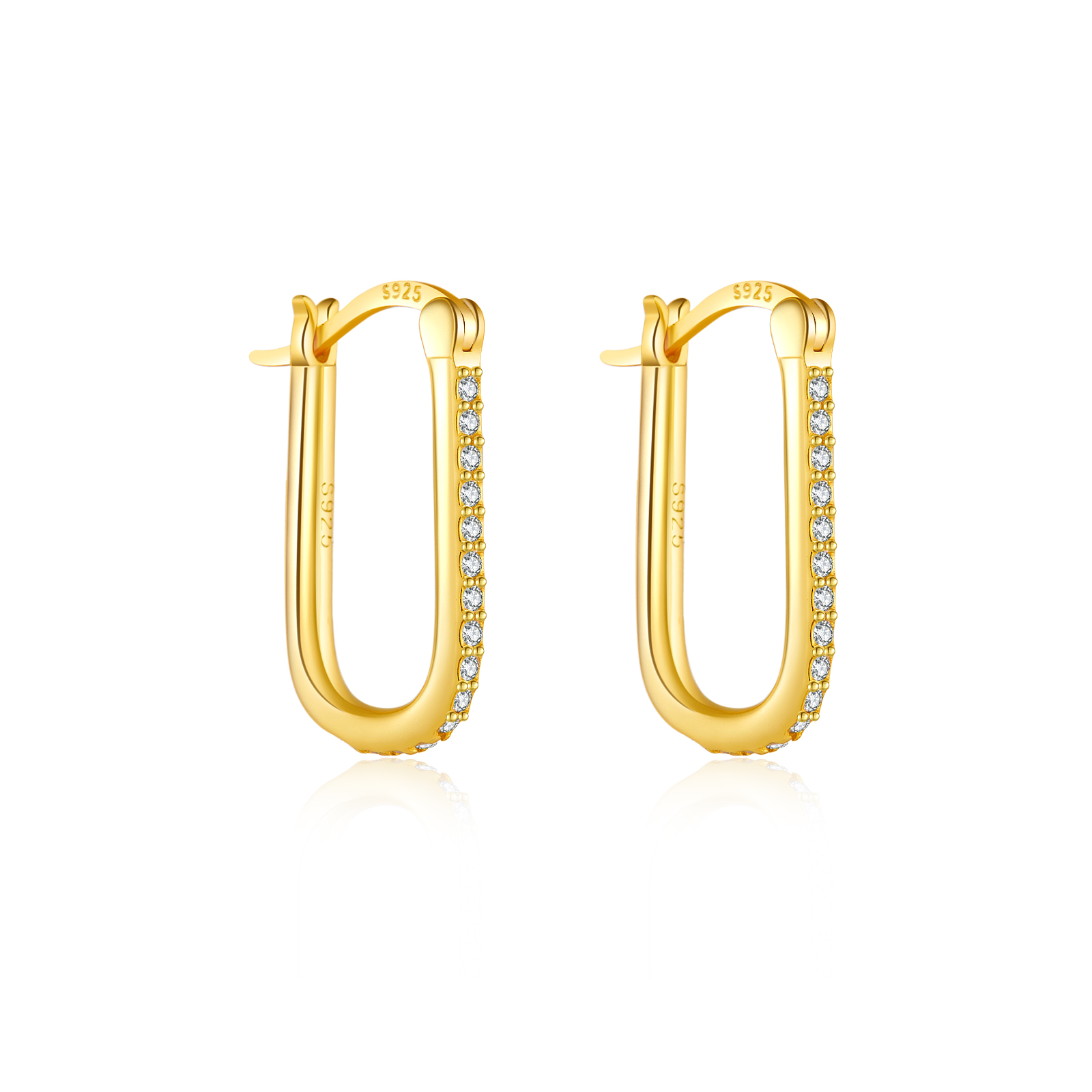 Be the first to review “925 Silver Gold Single-Row Black CZ Paved U-Shaped Hoop Earrings-MME186”