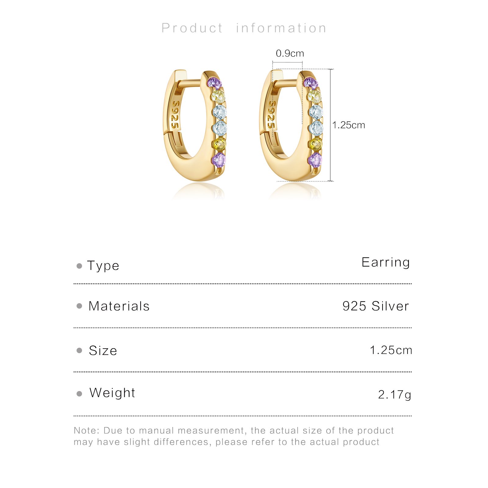 Be the first to review “925 Silver Gold Single Row Micro Pave CZ & Rainbow CZ Huggie Earrings-MME1320”