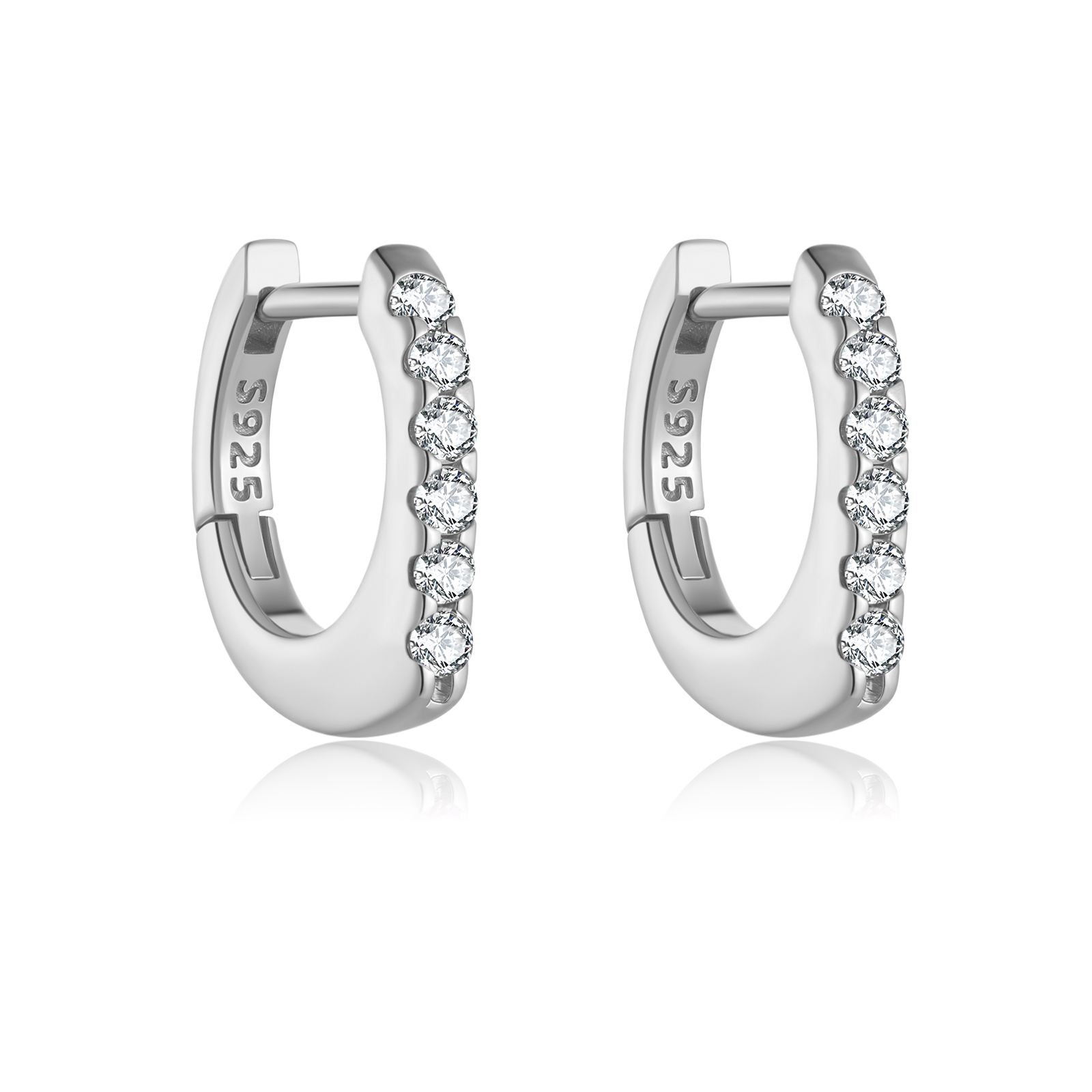 925 Silver Gold Single Row Micro Pave CZ & Rainbow CZ Huggie Earrings-MME1320
