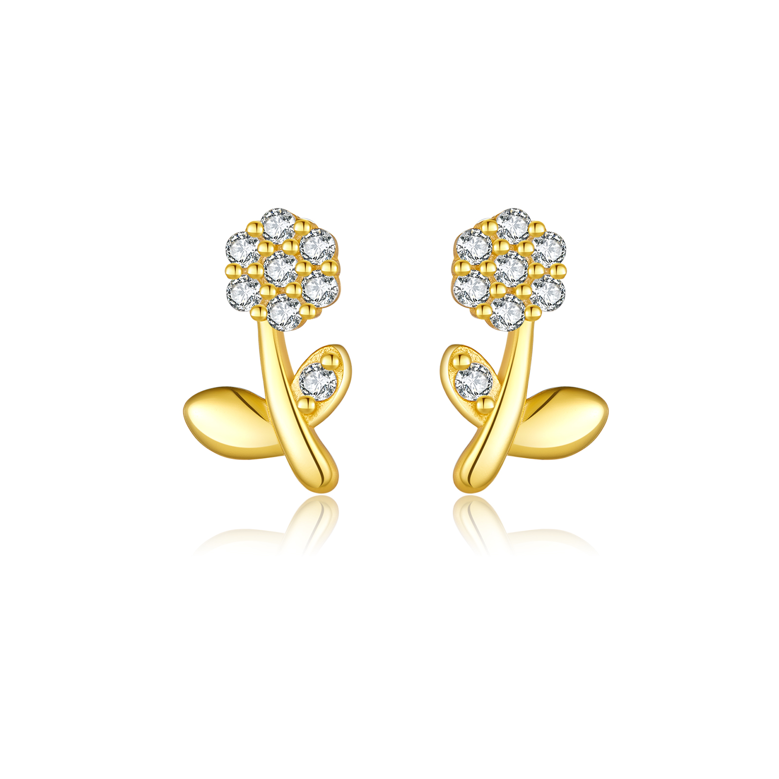 925 Silver Gold Spring Flower CZ Stud Earrings-MME318