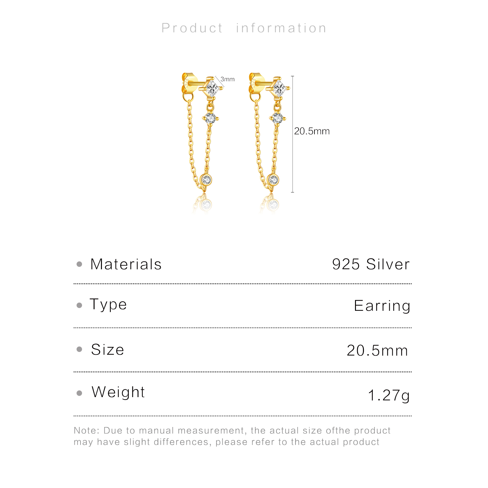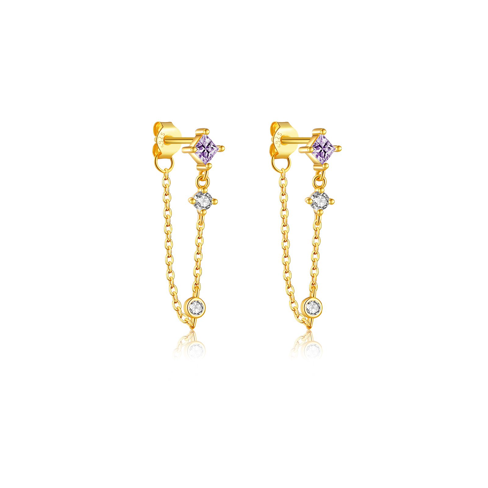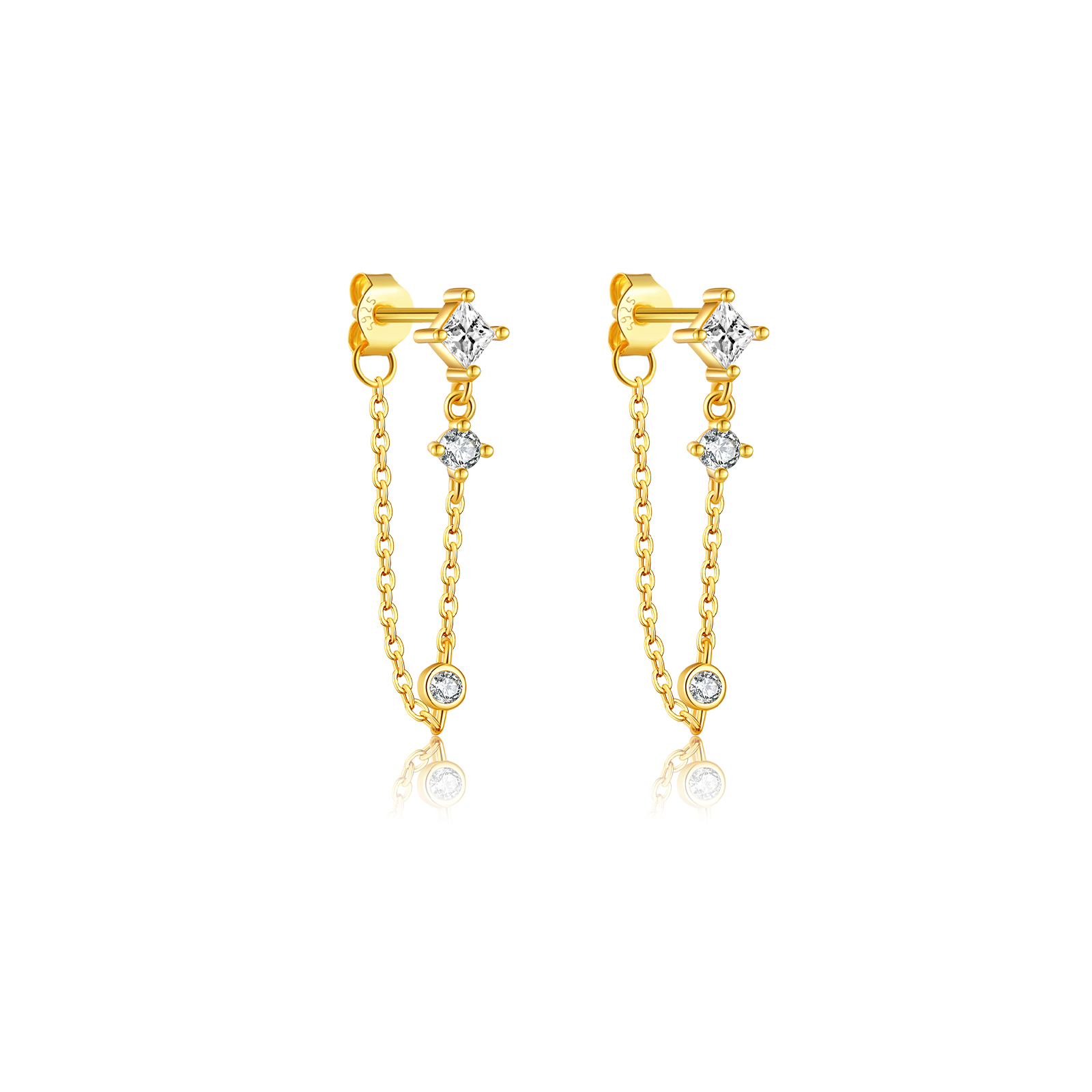 Be the first to review “925 Silver Gold Square-Round CZ Mixed-Setting Chain CZ Charm Studs-MME407”