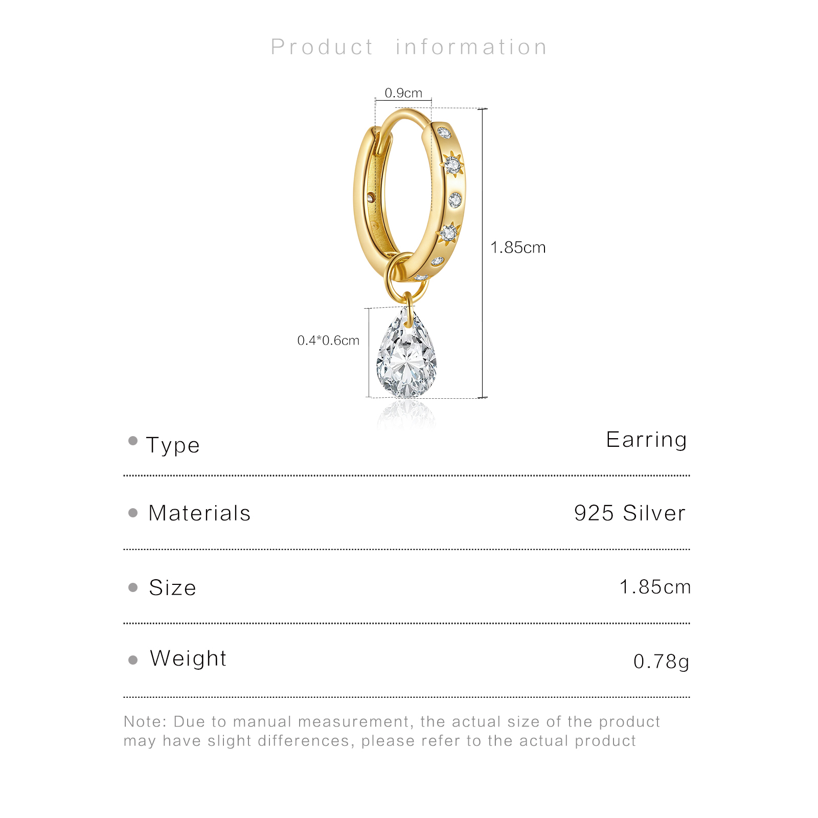 | Size | 18.5mm Height 8.5mm Inner Diameter 4mm *6mmPendant |