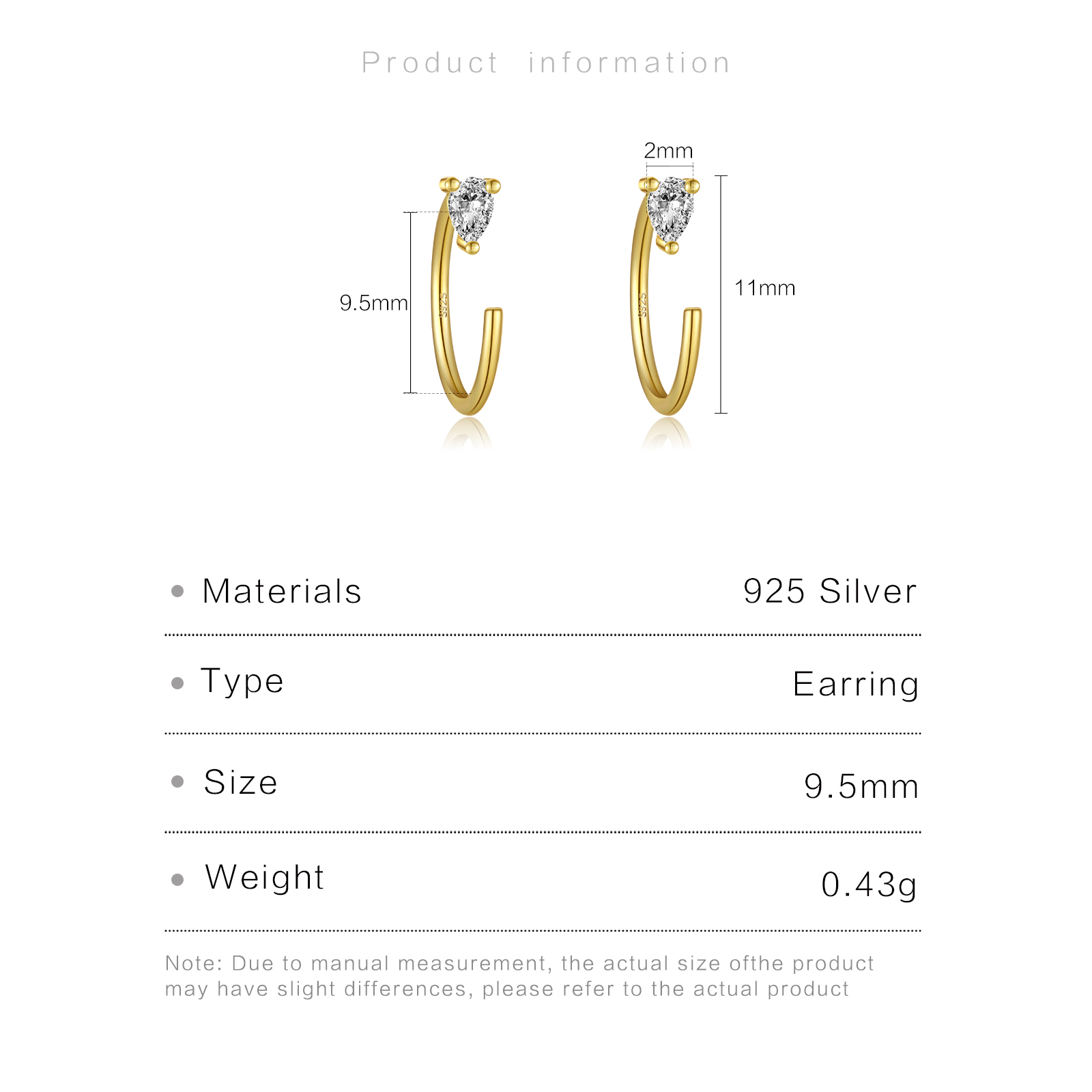 | Size | 11mm Height 9.5mm Inner Diameter 2mm CZ Size |