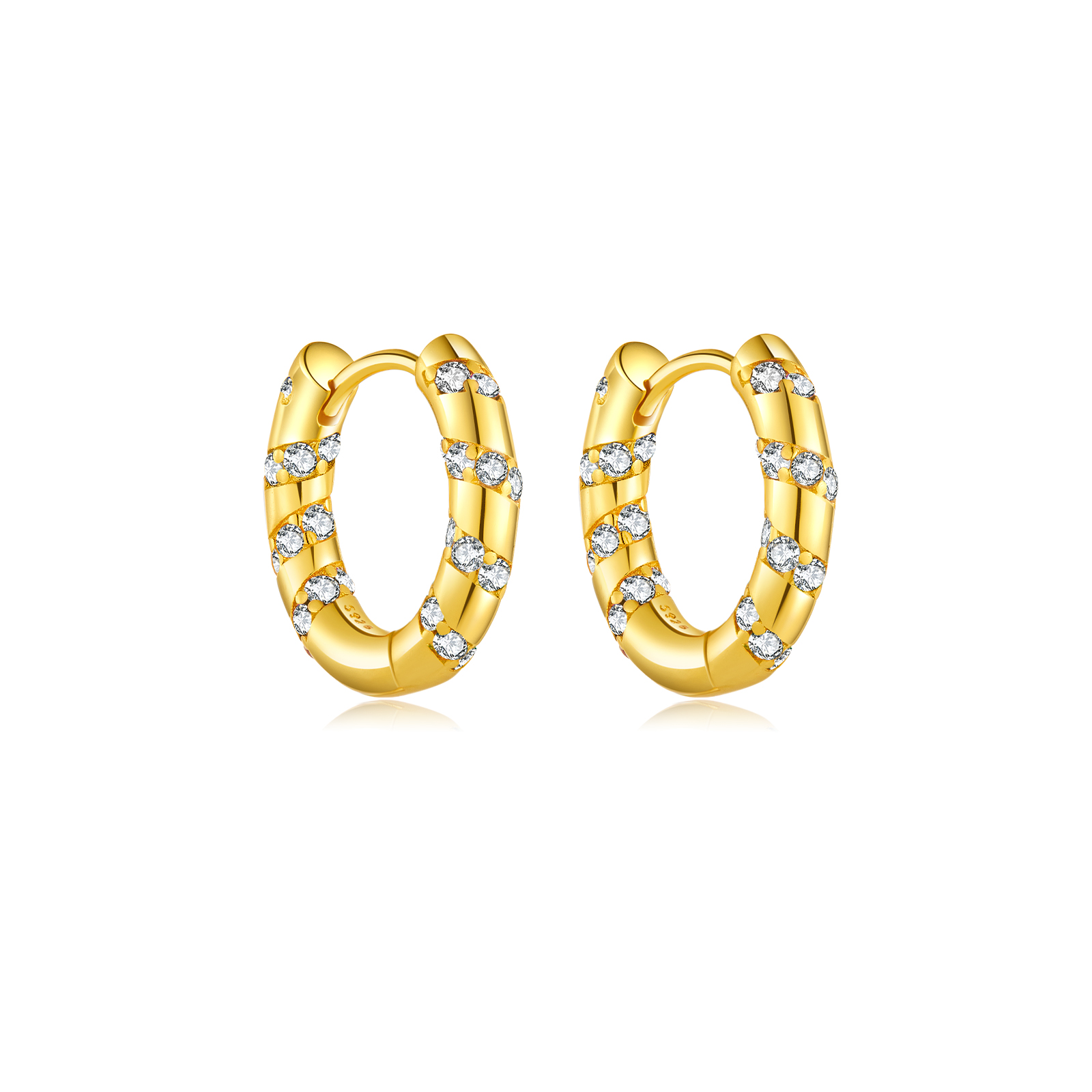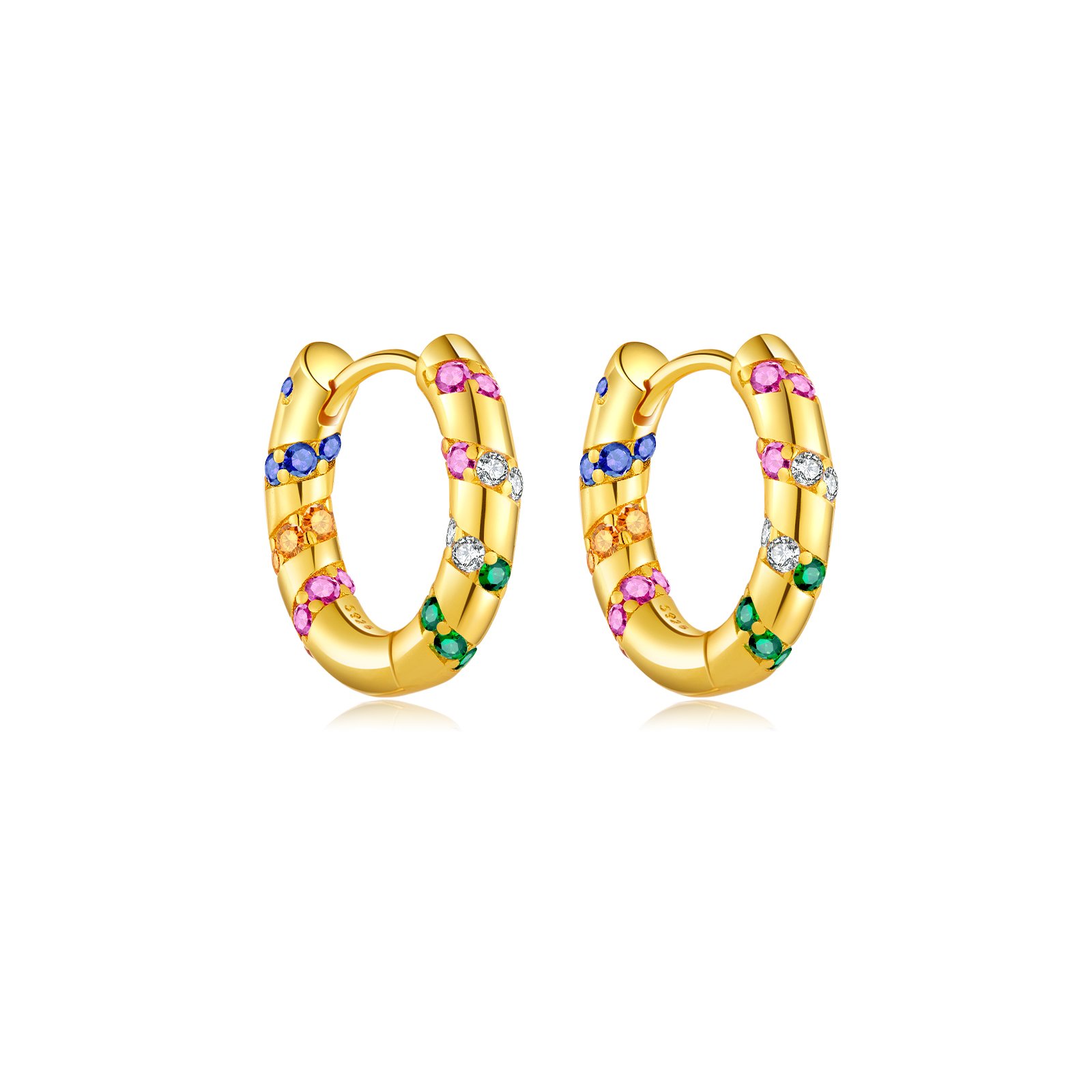 925 Silver Gold White/Multi-Color CZ Huggie Earrings-MME324