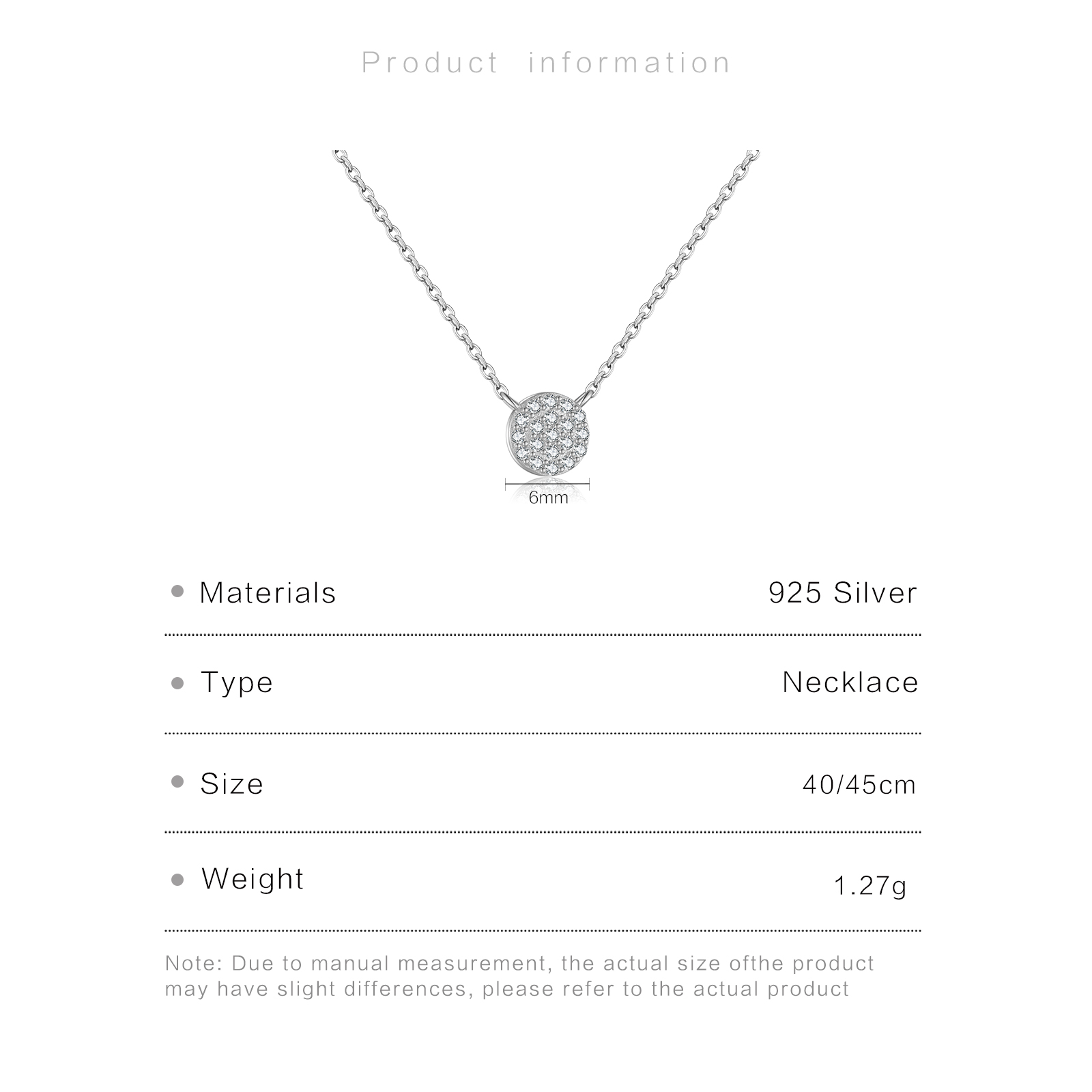 | Size | Pendant:6mm Chain Length:40cm/45cm |